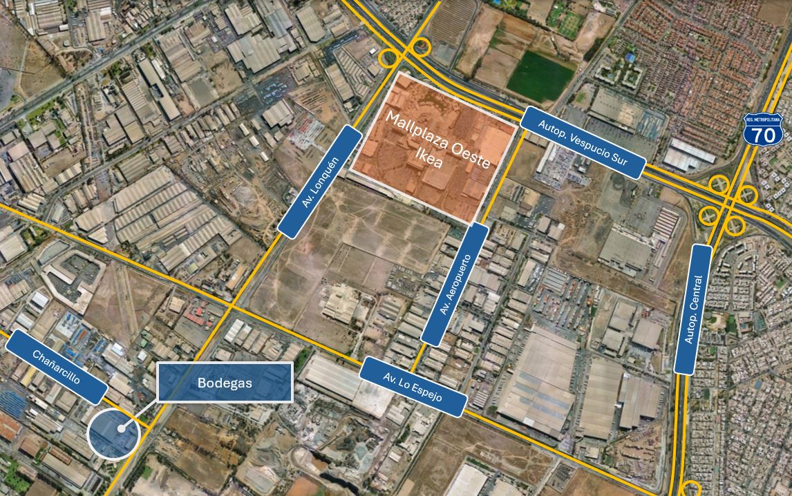 Con gran conectividad en eje Av. Lo Espejo con Lonquén. Con acceso a Autopistas Vespucio Sur y General Velasquez, además de Camino a Melipilla. A minutos de Mall Plaza Oeste (Ver imágen del mapa).