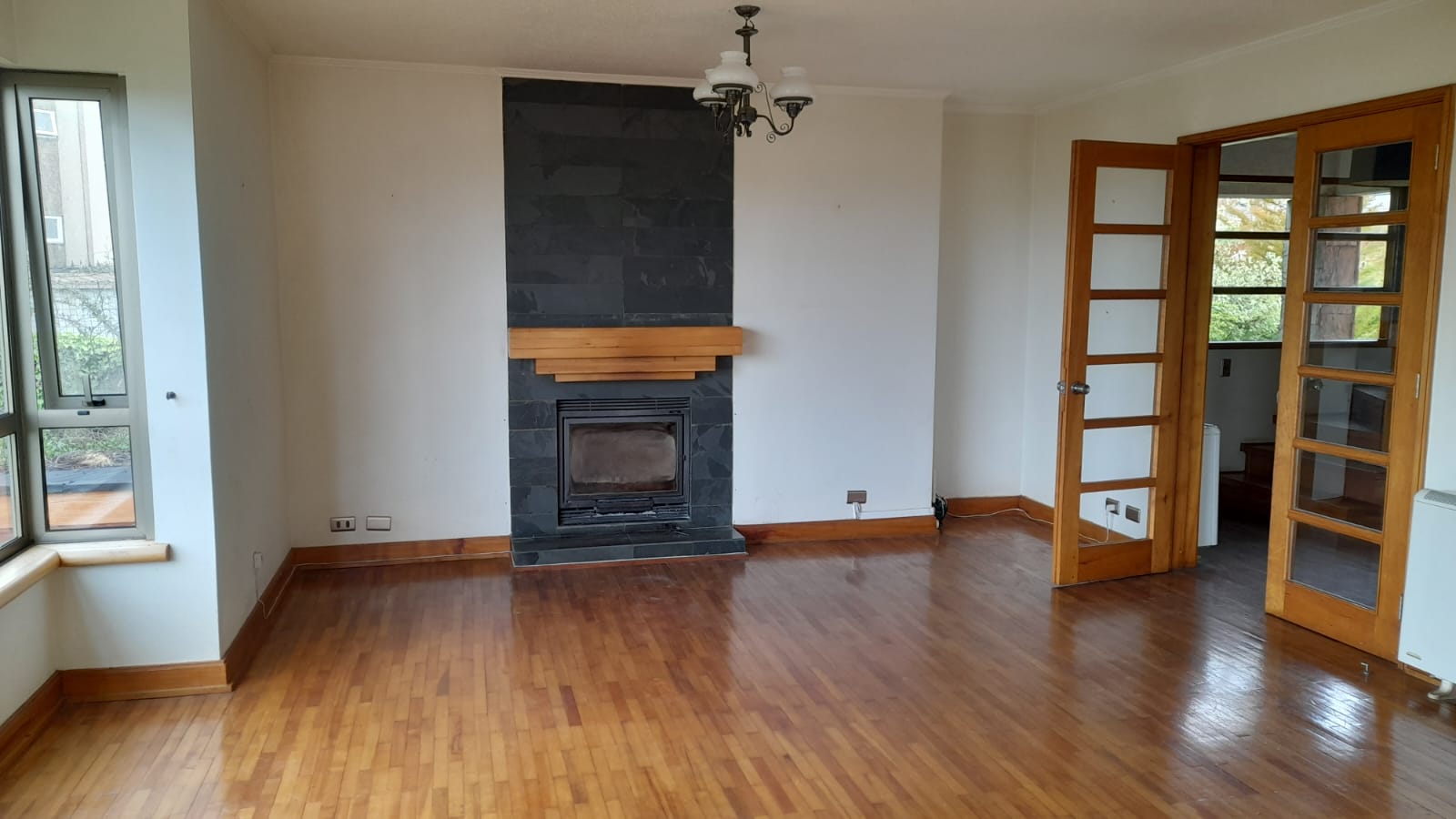 Calefacción eléctrica con radiadores y chimenea en living.