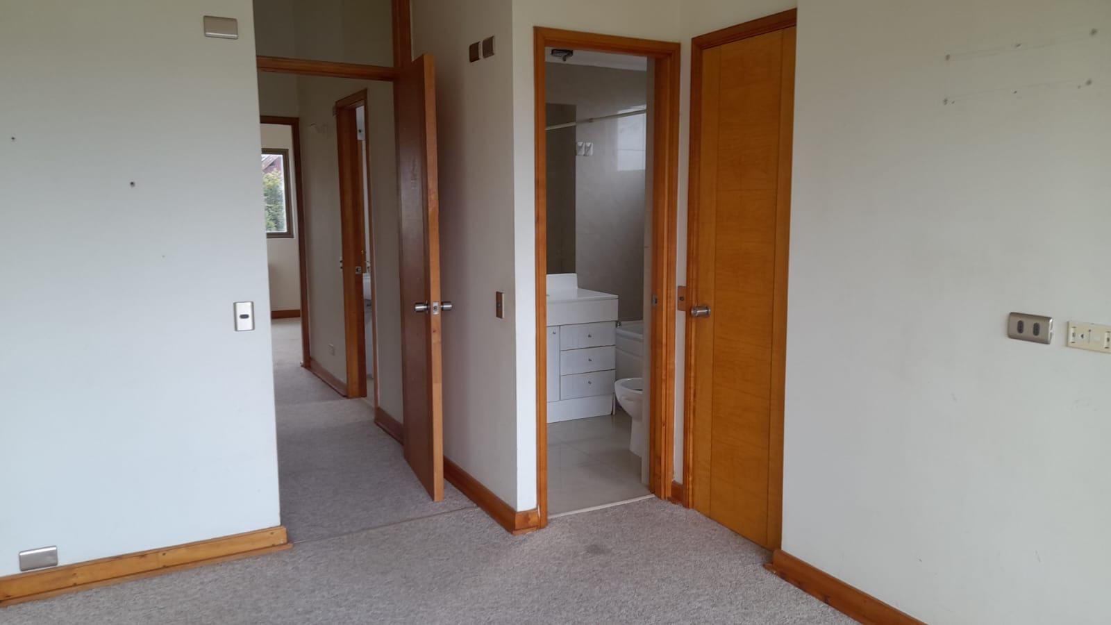 Segundo nivel: 4 dormitorios con closet, habitación principal con baño en suite, tina con hidromasaje y closet separados. Tercer baño completo. Piso alfombra.