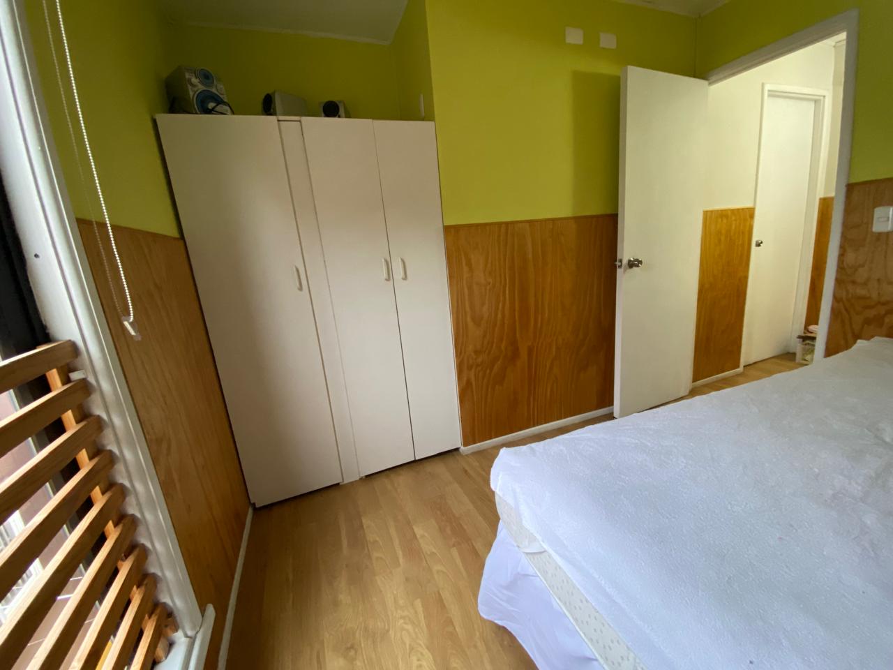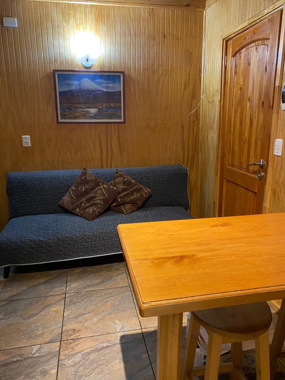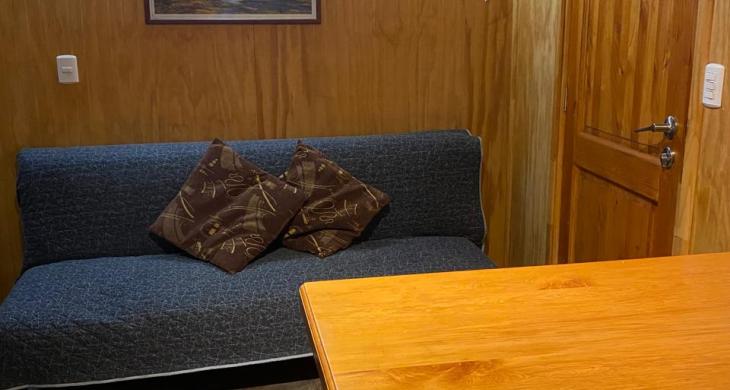 Cómoda cabaña de 2 pisos en sector Parque Los Torreones, Las Animas. Consta de 2 dormitorios, que incluyen 1 cama de 2 plazas y otra de plaza y media. Baño completo. Cocina abierta con comedor de diario, cocina a gas, refrigerador y lavadora. Calefacción por estufa a pellet.