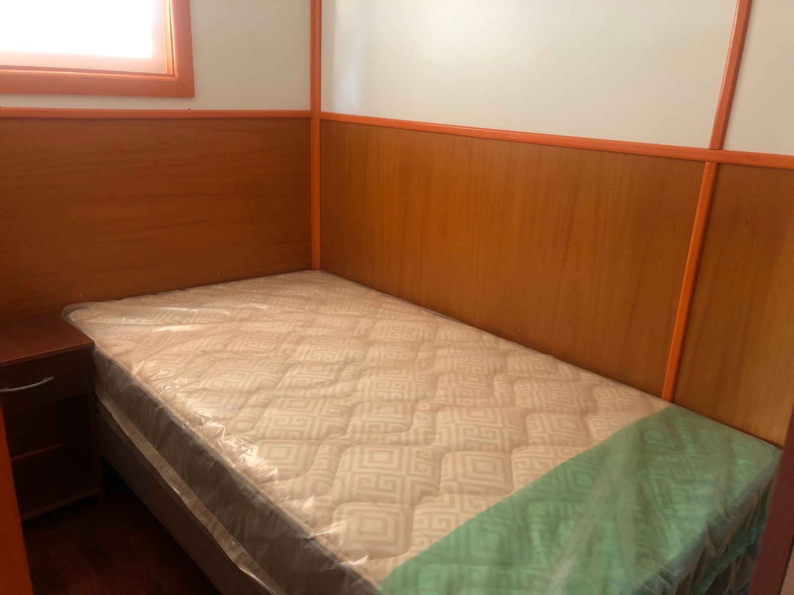Entrada con portón y reja, living comedor, cocina americana amoblada (con loza y ollas), cocina a gas con horno, extractor, refrigerador, baño completo con ducha, 2 dormitorios con closet, cama y velador (el segundo dormitorio es más pequeño).