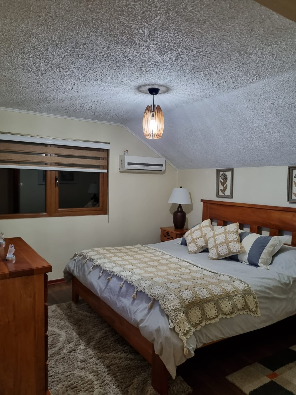 Esta hermosa casa de dos pisos, con una superficie construida de 132 m² en un terreno de 600 m², ofrece 4 amplios dormitorios uno en suite ,3 baños completos, cocina full equipada , amplio living comedor, quincho con hermosos ventanales que dan aun amplio patio con pasto natural y arboles frutales y una gran piscina estructural,casa se encuentra equipada con 2 estufas y 3 aires acondicionados perfecta para familias grandes. Disfrute de la tranquilidad y privacidad que brinda su extenso terreno, con espacio para 2 estacionamientos. Construida en 2005, esta casa usada se encuentra en excelente estado y lista para ser habitada