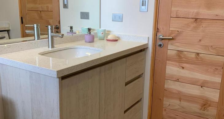 Área común: Hall de acceso, amplio living comedor, cocina americana amoblada completamente equipada con horno eléctrico , encimera, despensa y campana extractor, finas terminaciones, vigas a la vista.