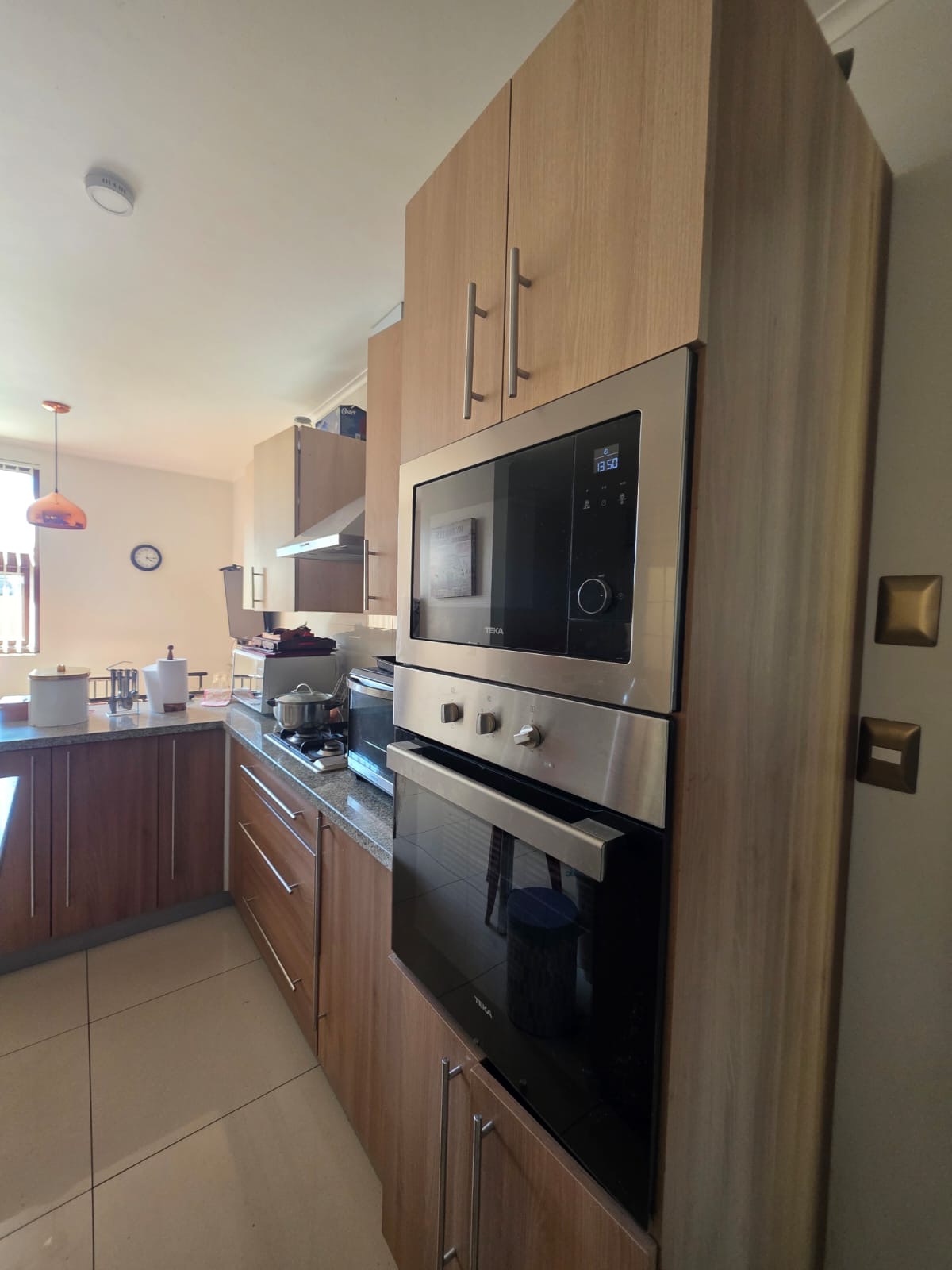 Equipamiento de cocina: horno, encimera, campana y microondas.