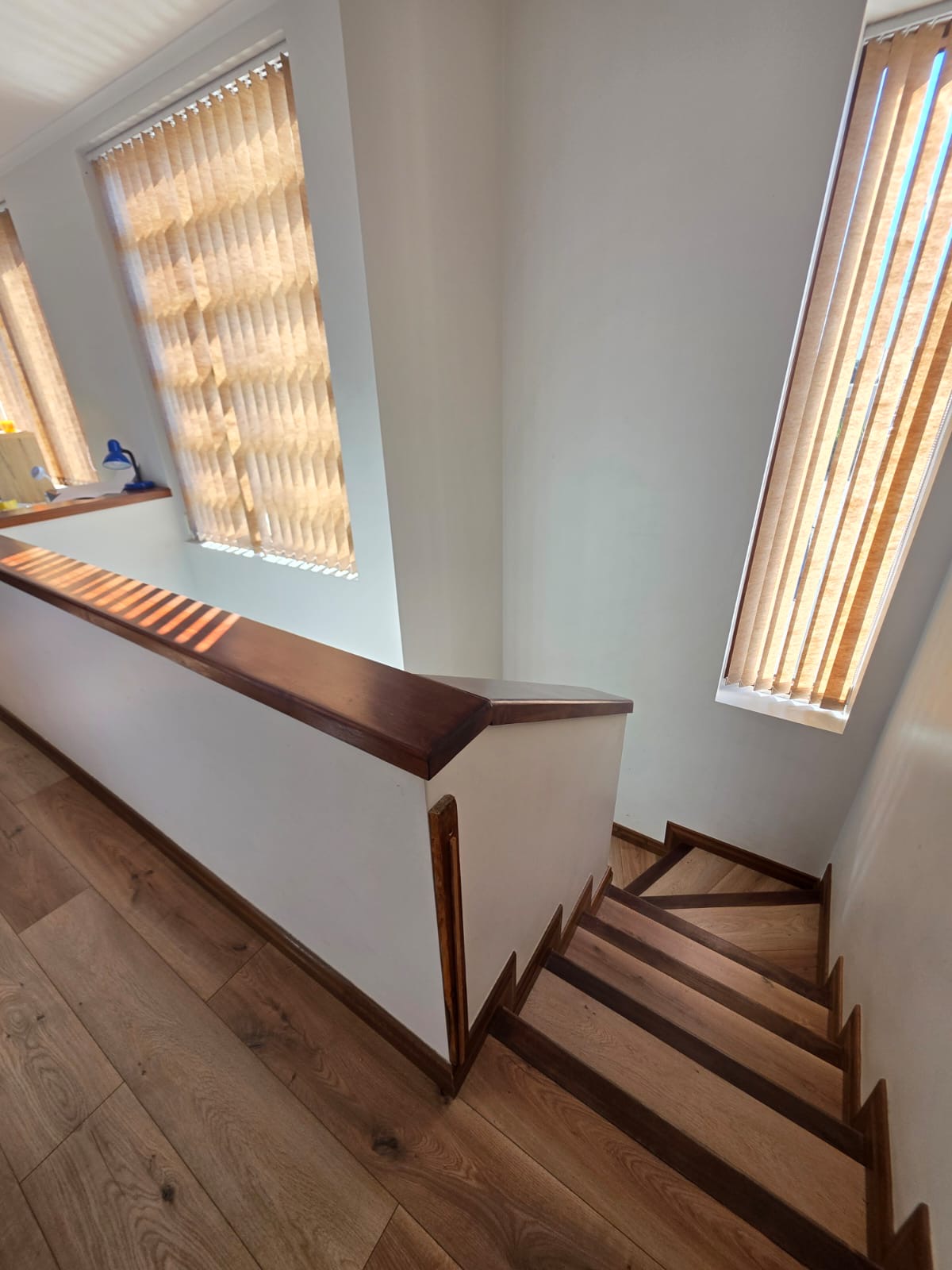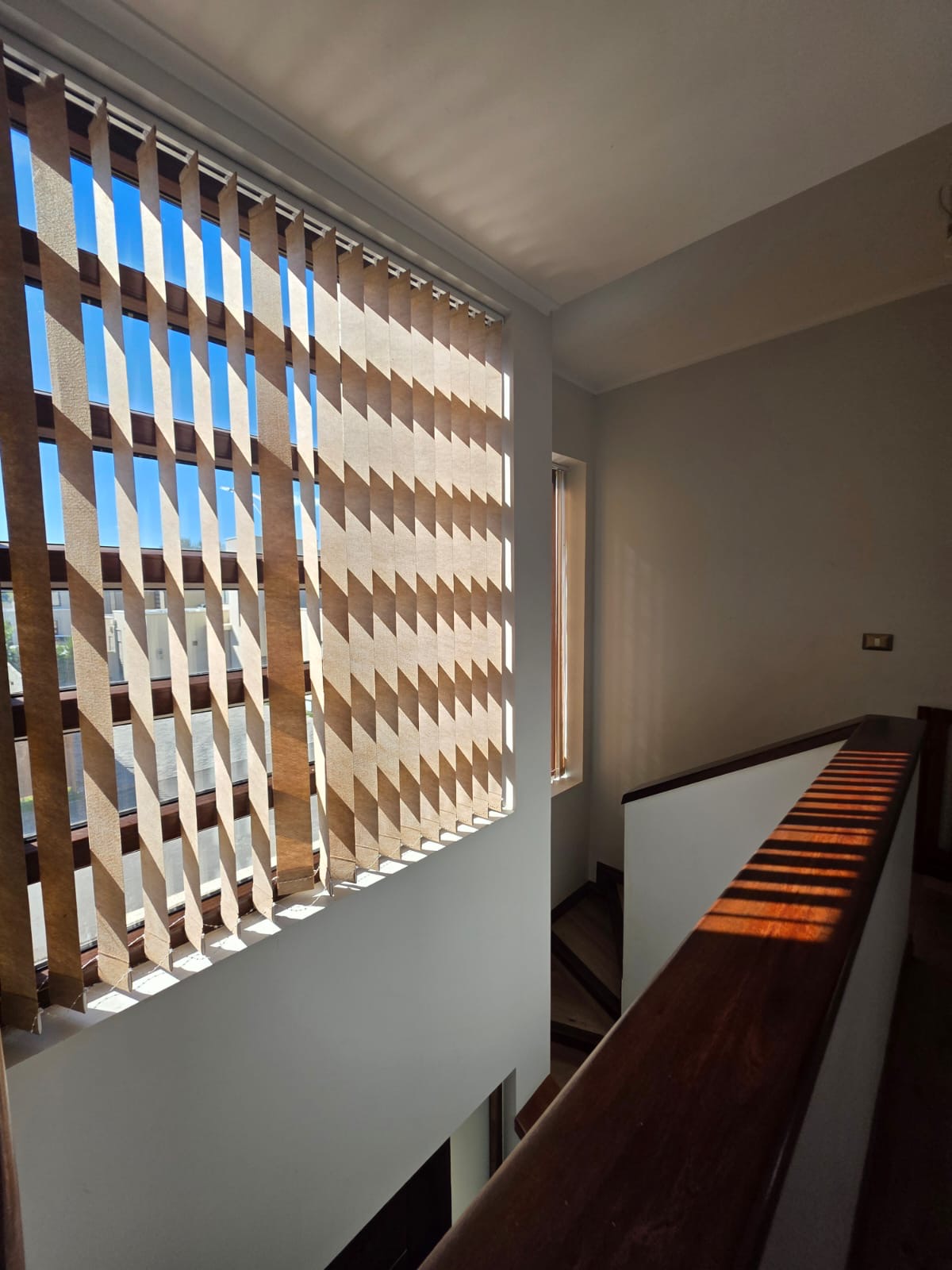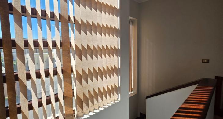 Cortinaje y lámparas instaladas.