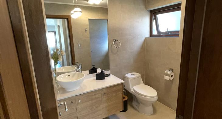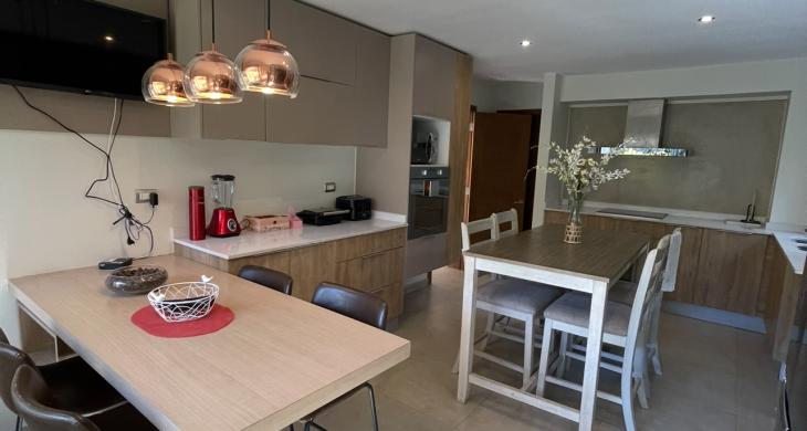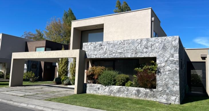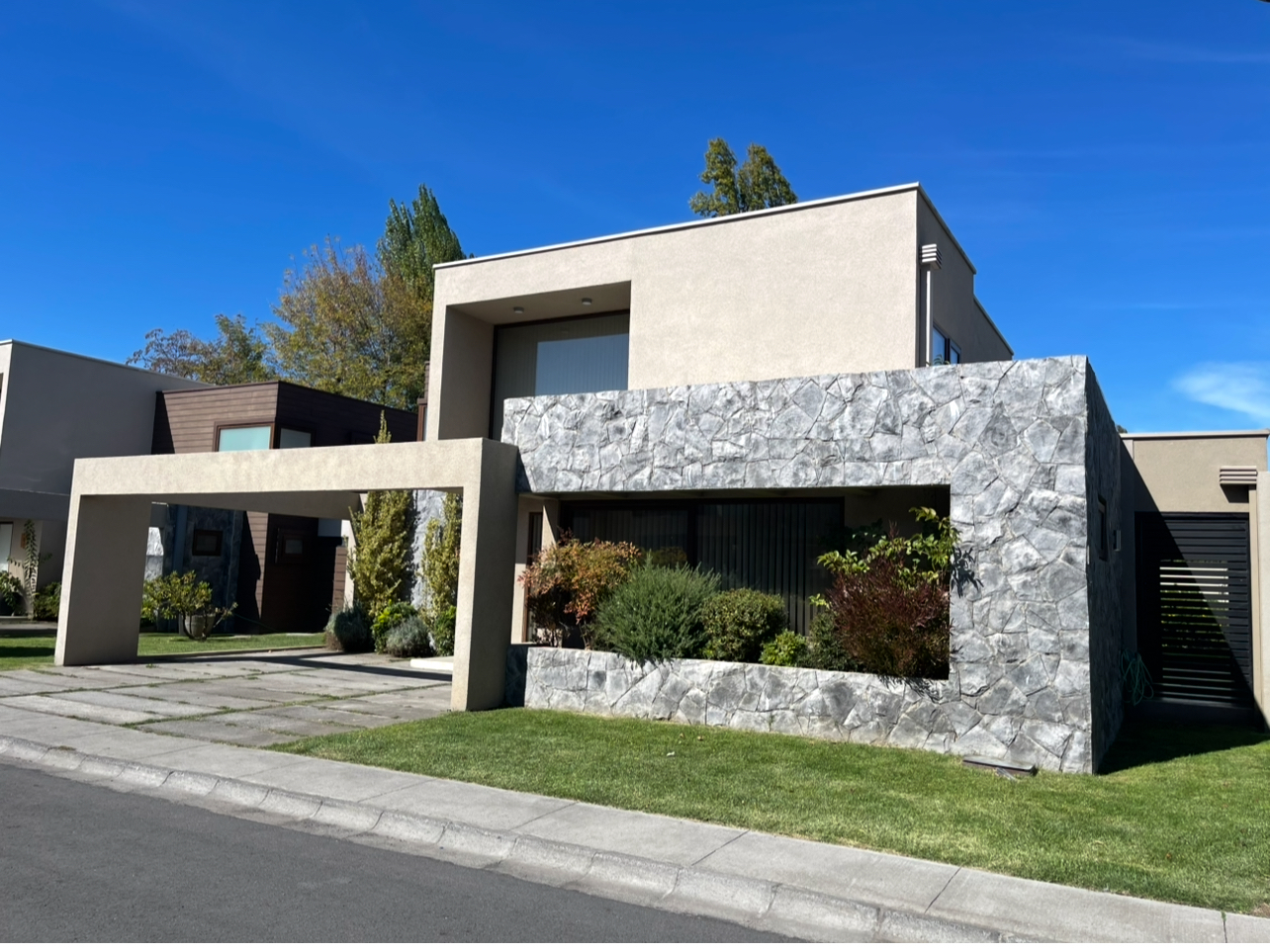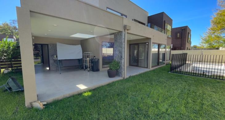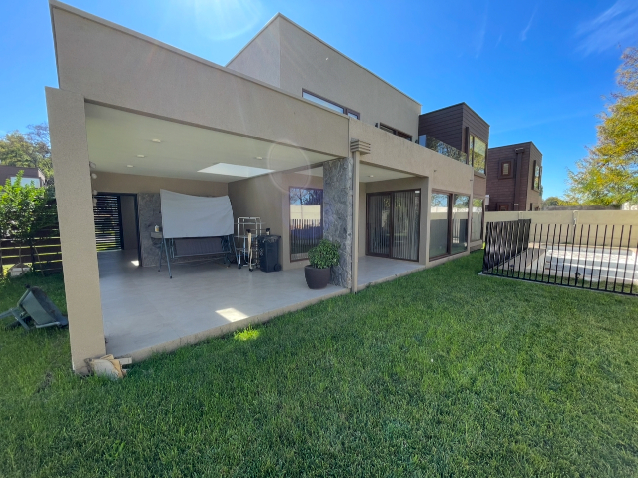 Casa con 4 habitaciones 2 en suite,5 baños ,amplio living comedor de 2 ambientes ,cocina full equipada con logia y baño de servicio, amplia sala de estar, home office ,calefacción central con caldera a pellet ,amplio patio con hermosa terraza y piscina