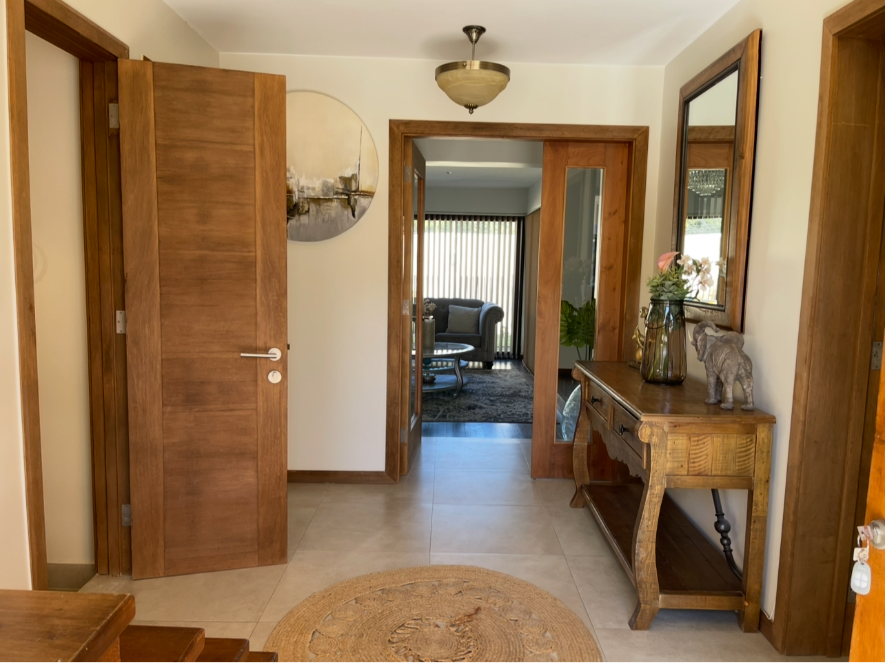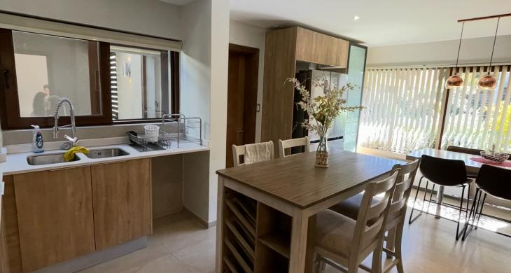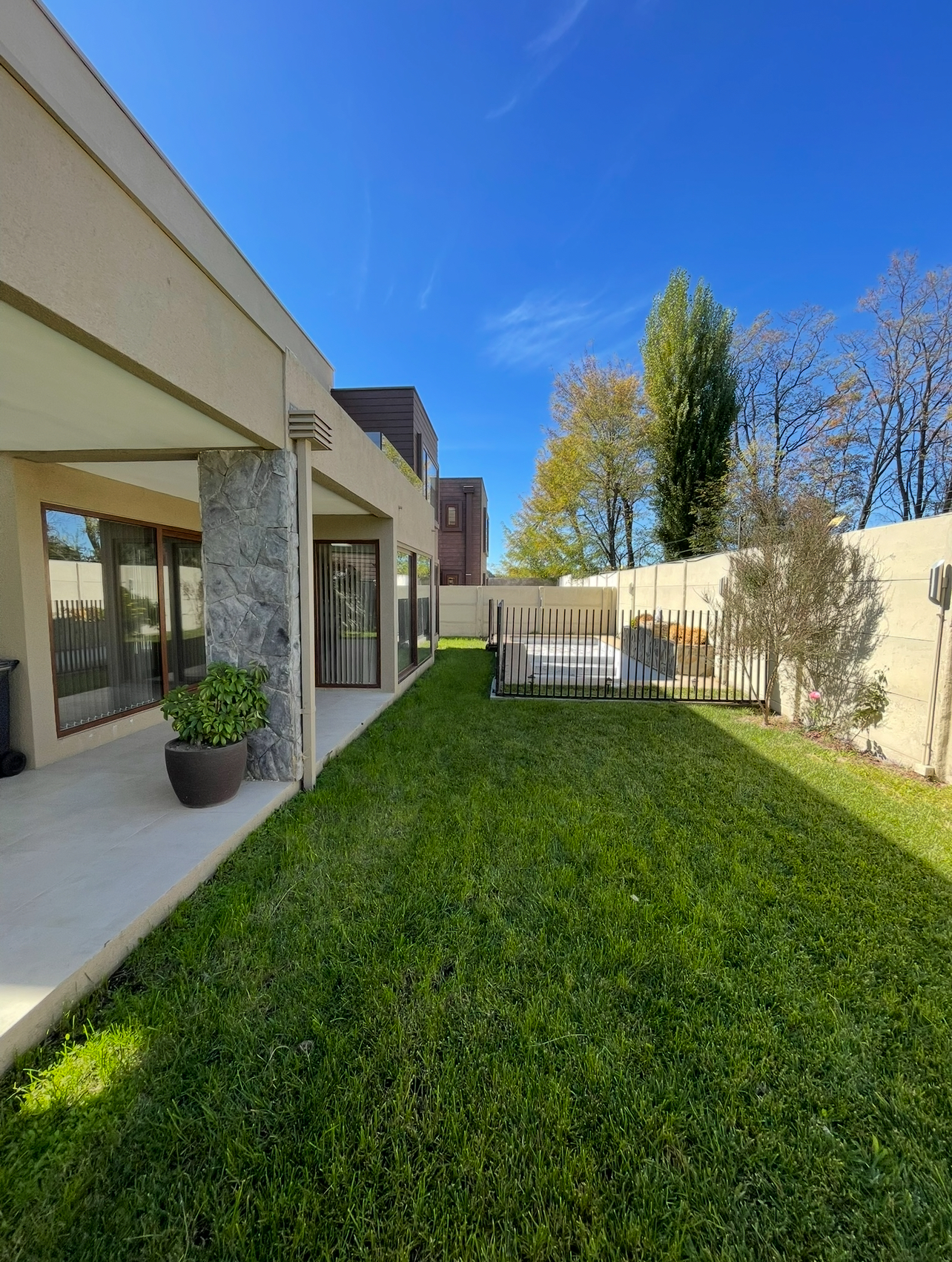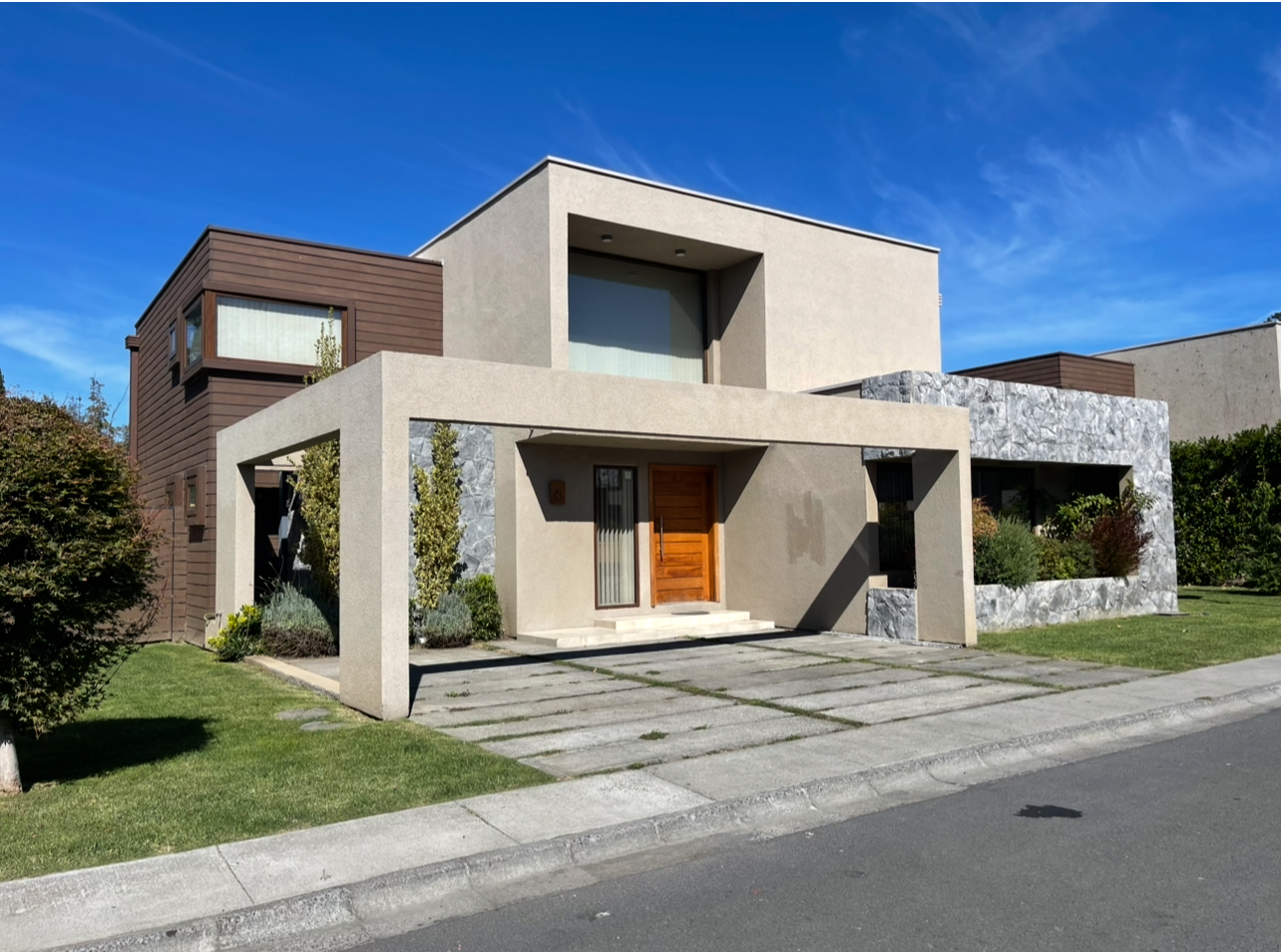 Casa con 4 habitaciones 2 en suite,5 baños ,amplio living comedor de 2 ambientes ,cocina full equipada con logia y baño de servicio, amplia sala de estar, home office ,calefacción central con caldera a pellet ,amplio patio con hermosa terraza y piscina