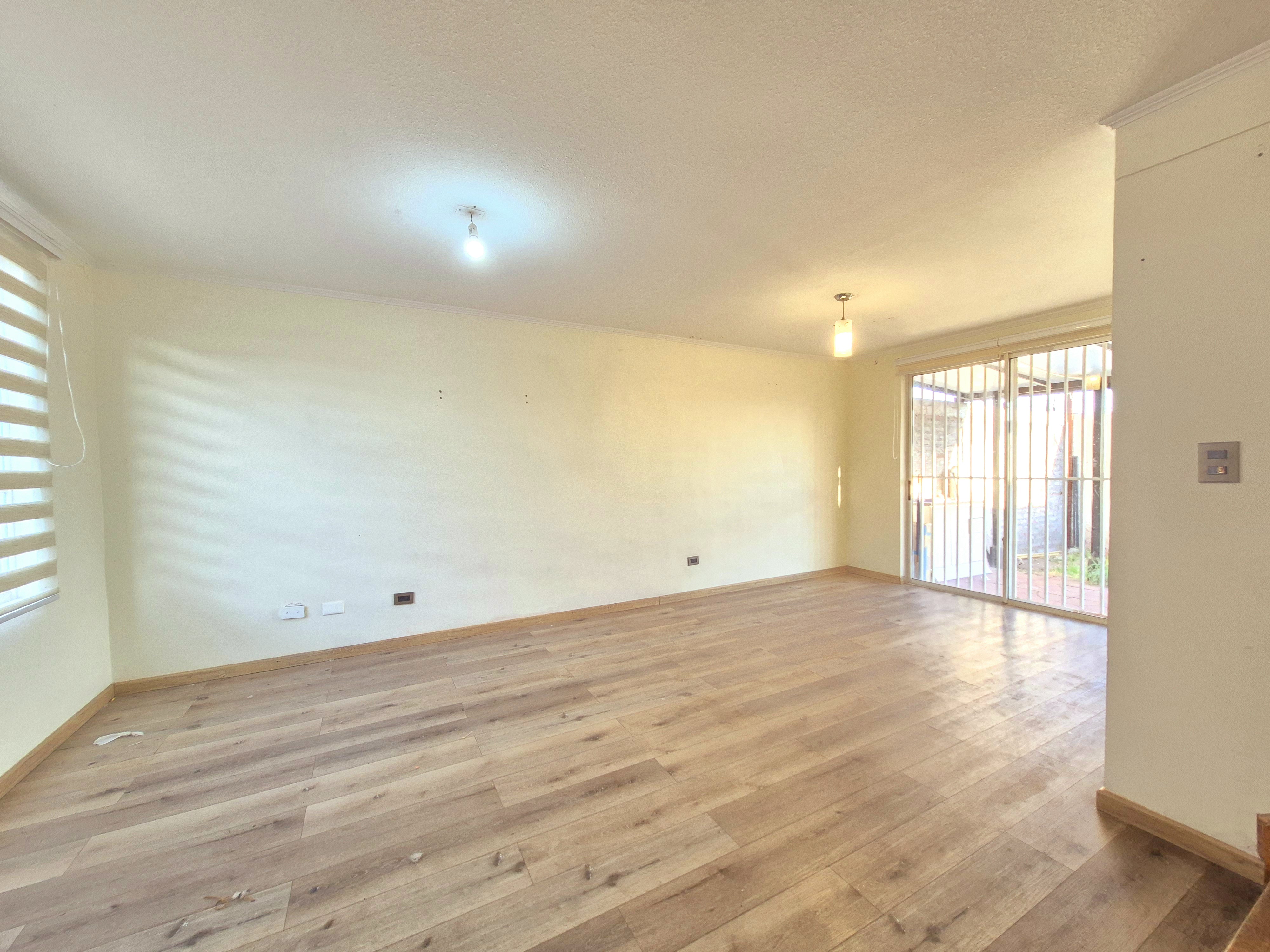 Amplio Living -Comedor con piso lotante Laminado con gran ventanal con salida a terraza trasera techada.