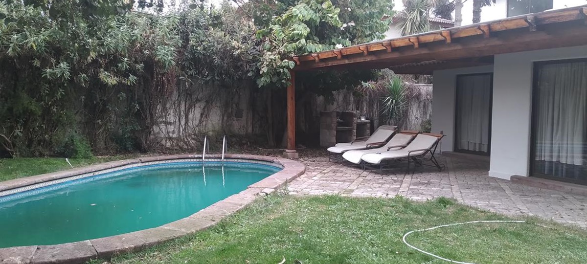 Piscina , quincho barbacoa. Estacionamiento para dos autos. Rejas cerco alarma.