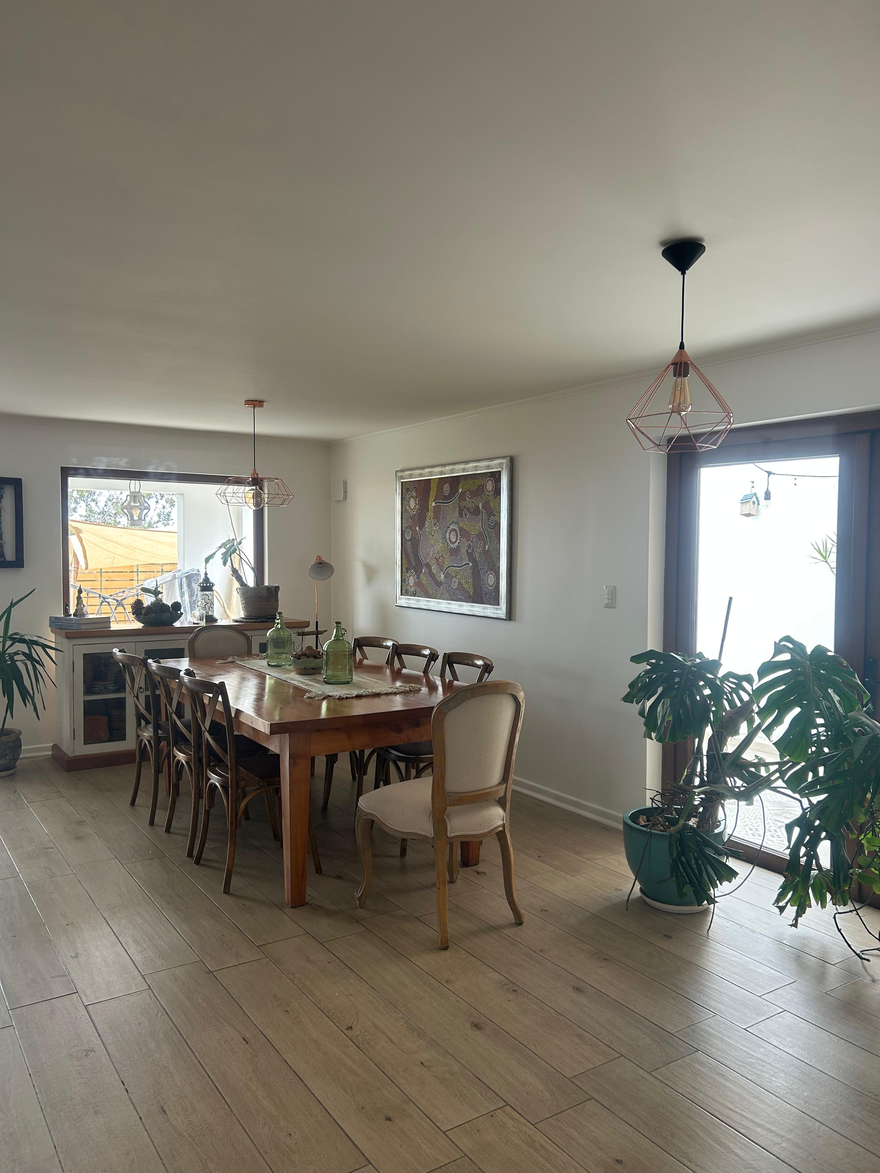 Primer piso: Amplio recibidor, living comedor, cocina americana, logia, bodega y baño de visitas. Áreas verdes, quincho y sector de calefonts.