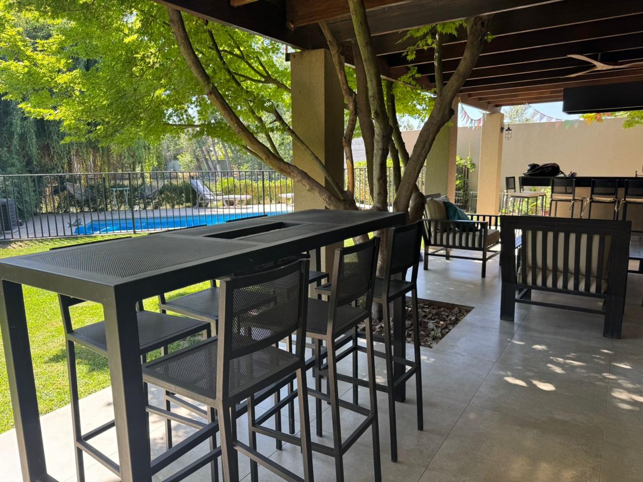 En el exterior, podrás disfrutar de un maravilloso patio con vista a la Laguna de Santa Elena, ideal para el descanso y la vida al aire libre. La casa cuenta con un completo quincho y una piscina temperada, perfectos para reuniones y entretención durante todo el año.