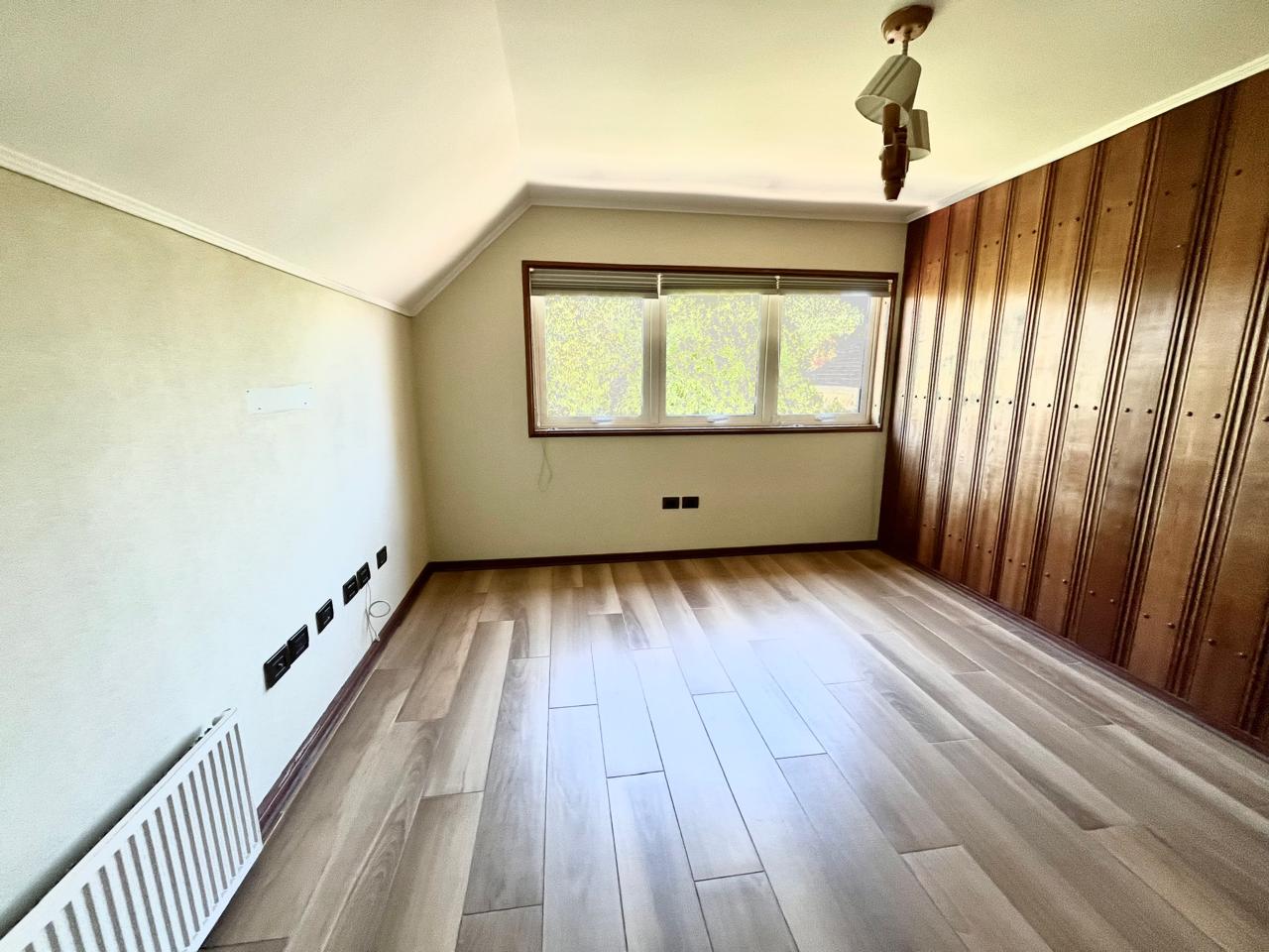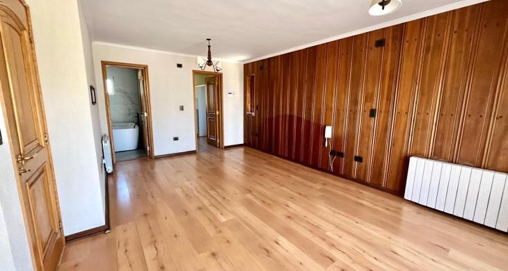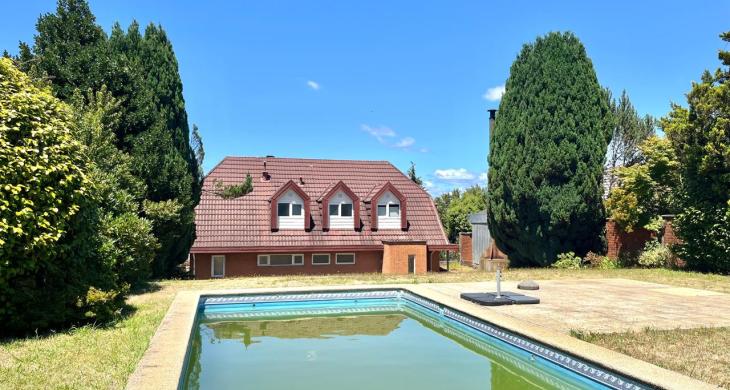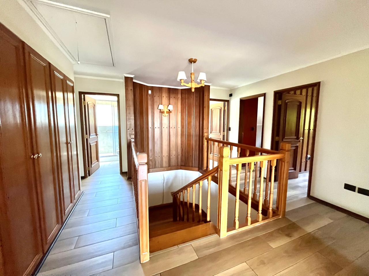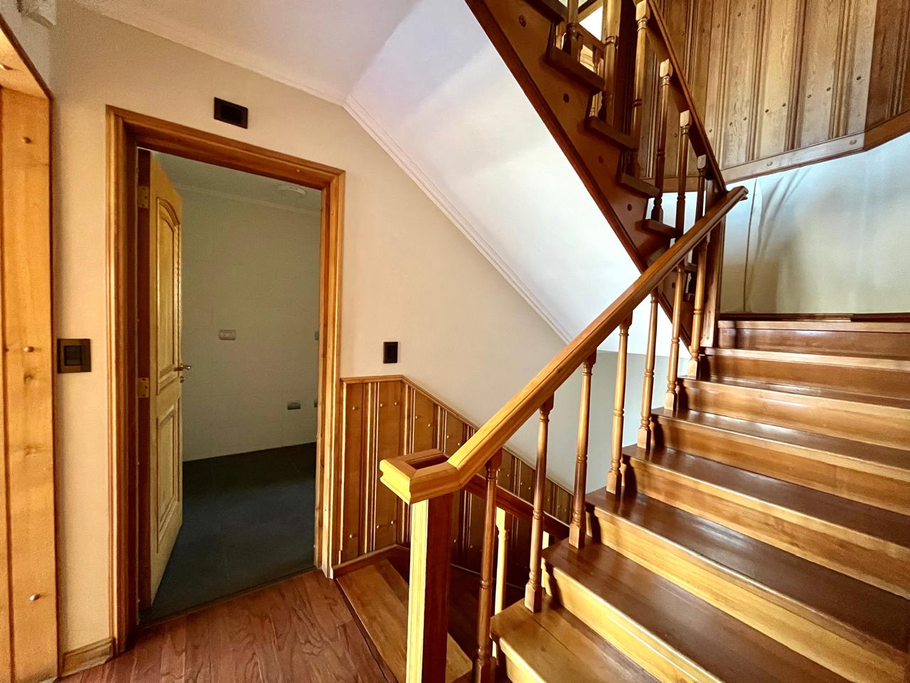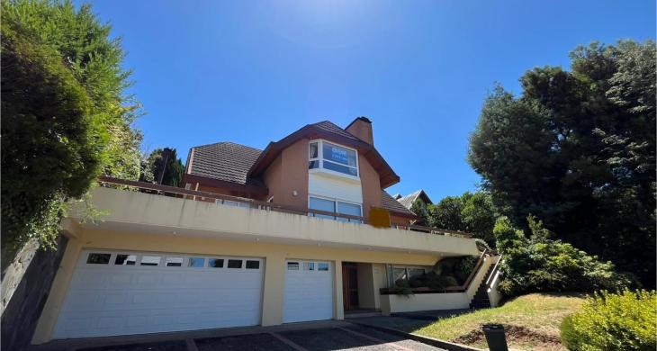 Esta imponente casa de 3 pisos destaca por su diseño funcional y acabados en madera nativa.  Construida en el año 2002, ofrece 392 m² construidos sobre un terreno de 917 m², proporcionando un espacio generoso para cada miembro de la familia. La distribución contempla: hall de acceso y gran sala para reuniones familiares con parrilla y bar. Segundo piso con luminoso living con chimenea y amplio comedor con acceso a espaciosa cocina con comedor de diario. Cuenta con 5 amplios dormitorios, incluyendo una lujosa suite principal con walking closet y acceso a balcón, 6 baños. En el tercer piso amplia y luminosa sala de estar. Zona de lavandería y caldera de petróleo o leña y que distribuye calefacción a toda la propiedad. Generoso patio interior con hermosa piscina y zona de ducha/vestidor. Gran bodega y sistema de riego automático. Disfruta de la comodidad de tener 3 estacionamientos disponibles en cochera totalmente cerrada y hermoso antejardín.