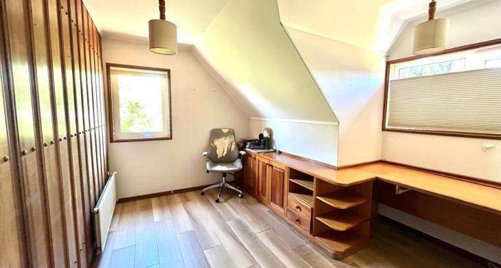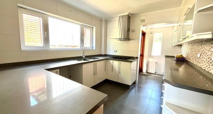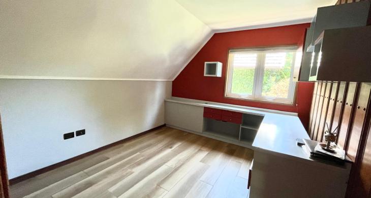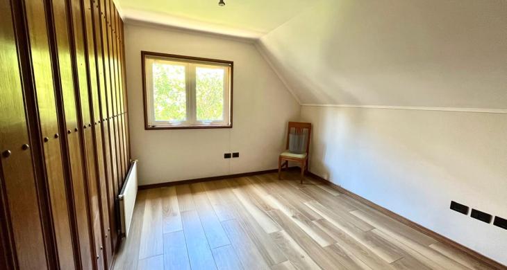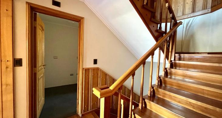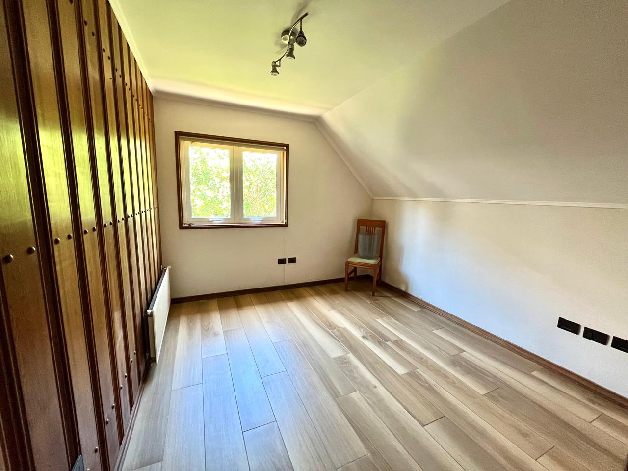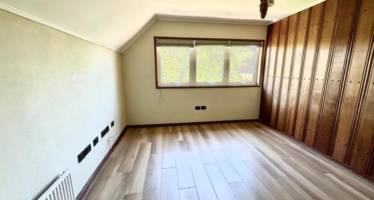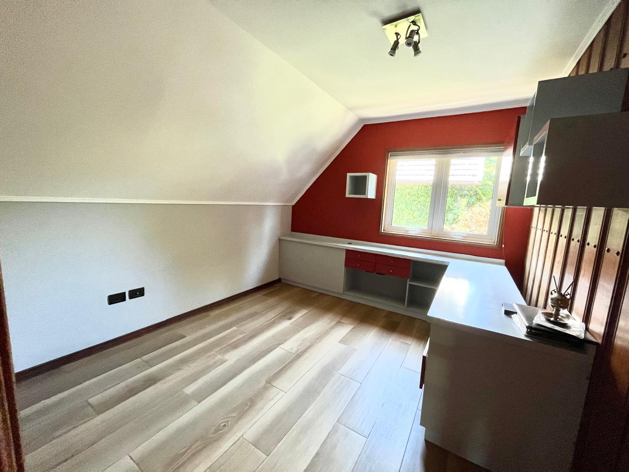 Esta imponente casa de 3 pisos destaca por su diseño funcional y acabados en madera nativa.  Construida en el año 2002, ofrece 392 m² construidos sobre un terreno de 917 m², proporcionando un espacio generoso para cada miembro de la familia. La distribución contempla: hall de acceso y gran sala para reuniones familiares con parrilla y bar. Segundo piso con luminoso living con chimenea y amplio comedor con acceso a espaciosa cocina con comedor de diario. Cuenta con 5 amplios dormitorios, incluyendo una lujosa suite principal con walking closet y acceso a balcón, 6 baños. En el tercer piso amplia y luminosa sala de estar. Zona de lavandería y caldera de petróleo o leña y que distribuye calefacción a toda la propiedad. Generoso patio interior con hermosa piscina y zona de ducha/vestidor. Gran bodega y sistema de riego automático. Disfruta de la comodidad de tener 3 estacionamientos disponibles en cochera totalmente cerrada y hermoso antejardín.