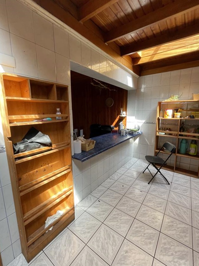 En la zona del patio, contruida una cabaña , amplia muy cómoda , cuenta con una habitación amplia y baño completo. Destino taller, turismo, lo que se estime.