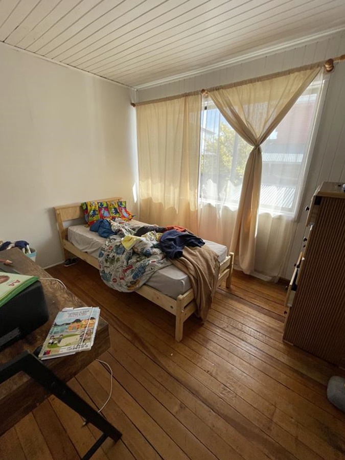 Excelente propiedad con antejardin y patio, conformada por una casa de dos pisos pareada por un lado y una cabaña adaptada para clases, taller.