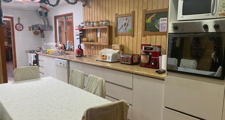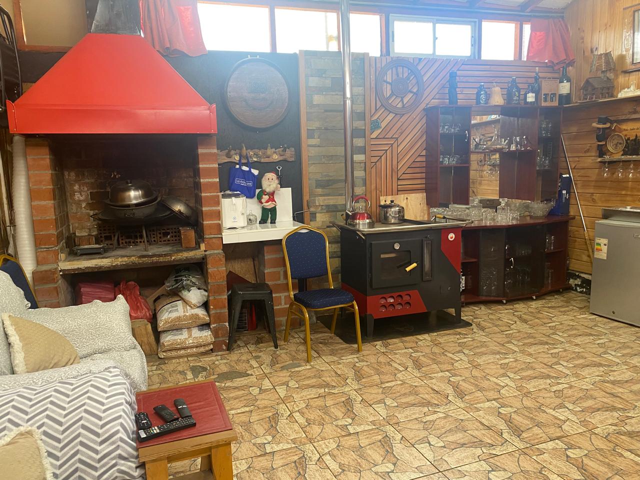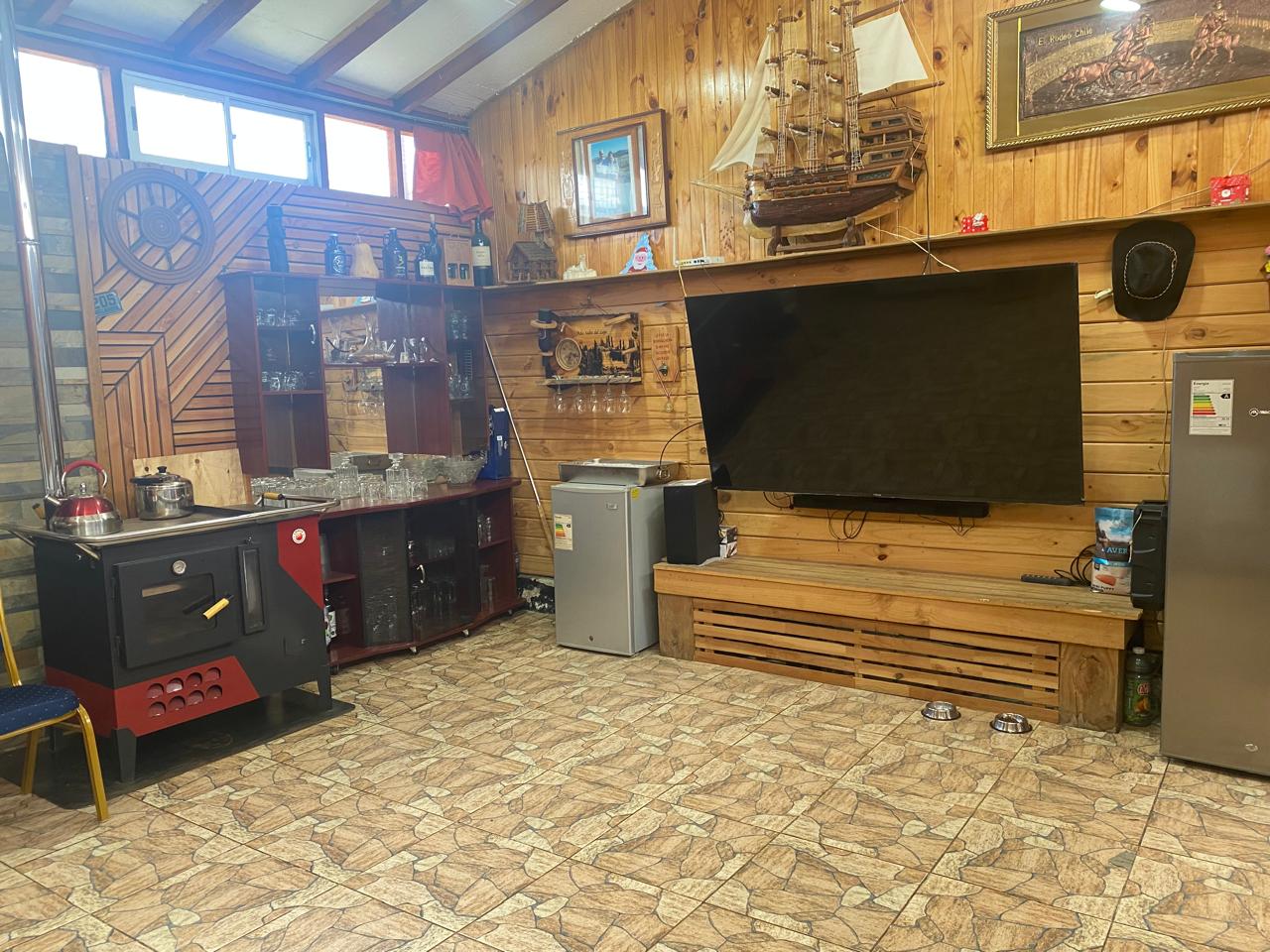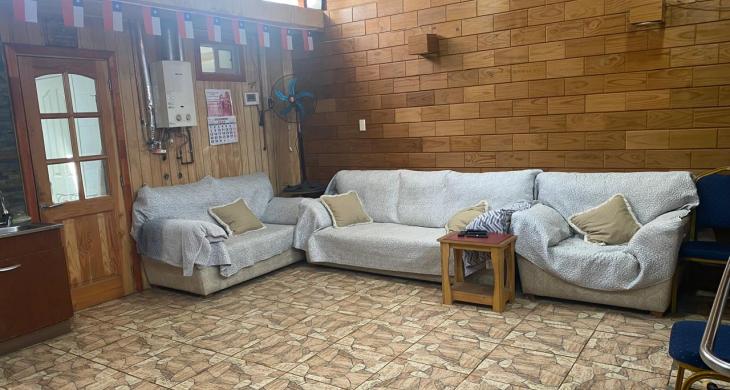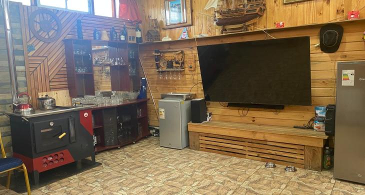 Hermoso quincho techado revestido en madera, estacionamiento techado en la entrada.