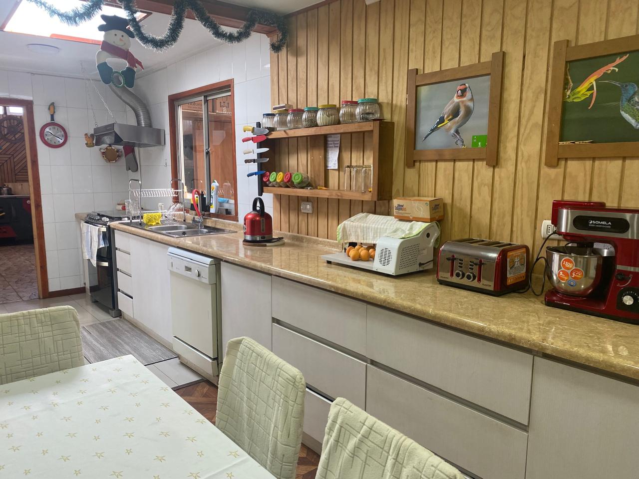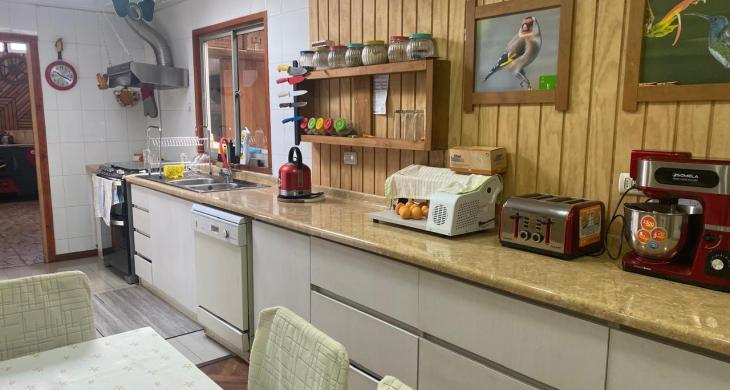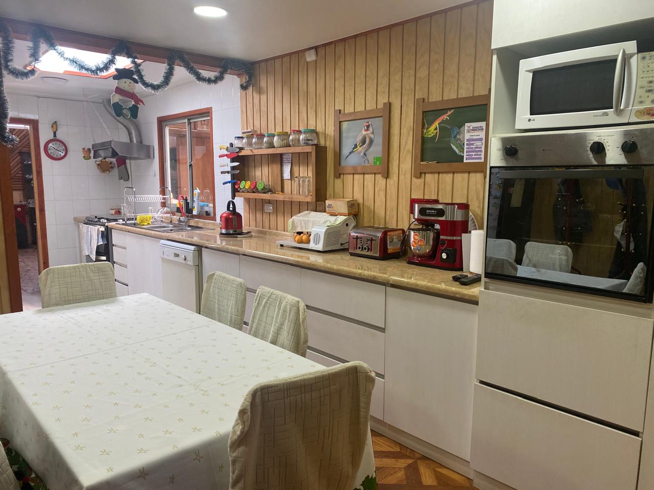 Distribución: Primer piso. Antejardín, Living comedor con cerámicas, aire acondicionado, amplia cocina amoblada, con cerámicos en el piso, amplio baño con ducha, hermoso quincho techado revestido en madera, logia y taller o bodega.