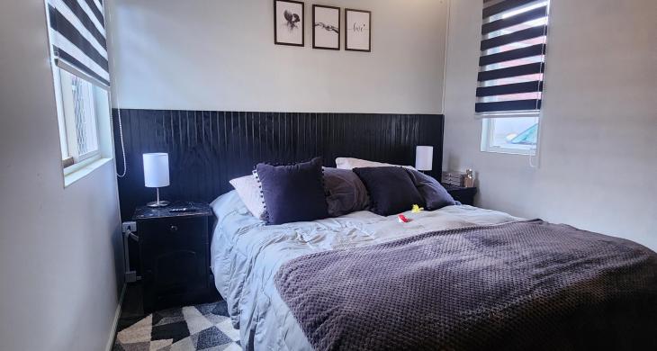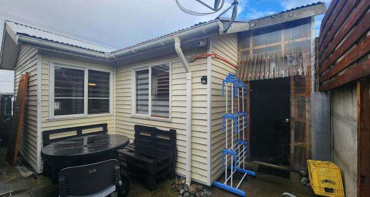 La distribución de esta casa de un piso ofrece, living comedor cocina en un solo ambiente, dos dormitorios , baño y gran bodega techada en la parte posterior.