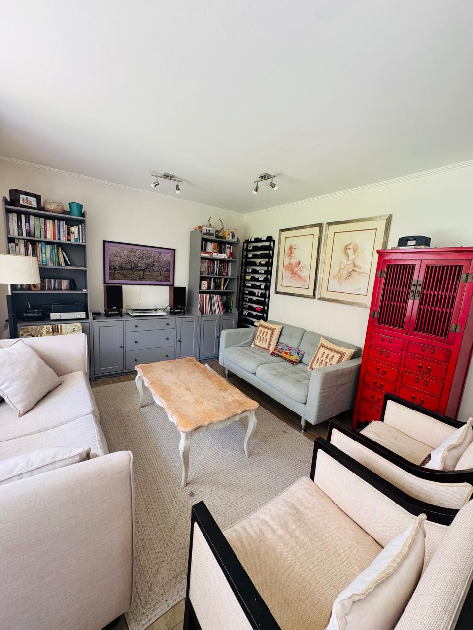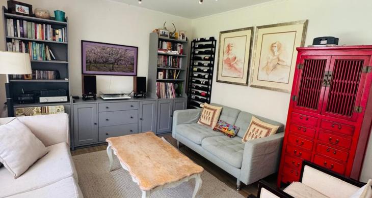 Sala de Estar acogedora con equipo de Aire a condicionado, al igual que los 2 dormitorios con vista al jardín y baño completo.