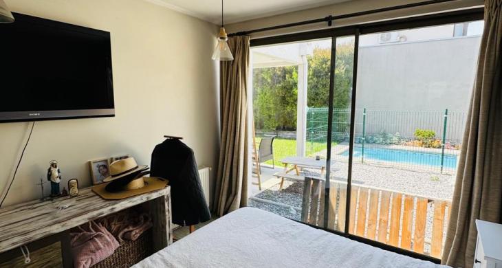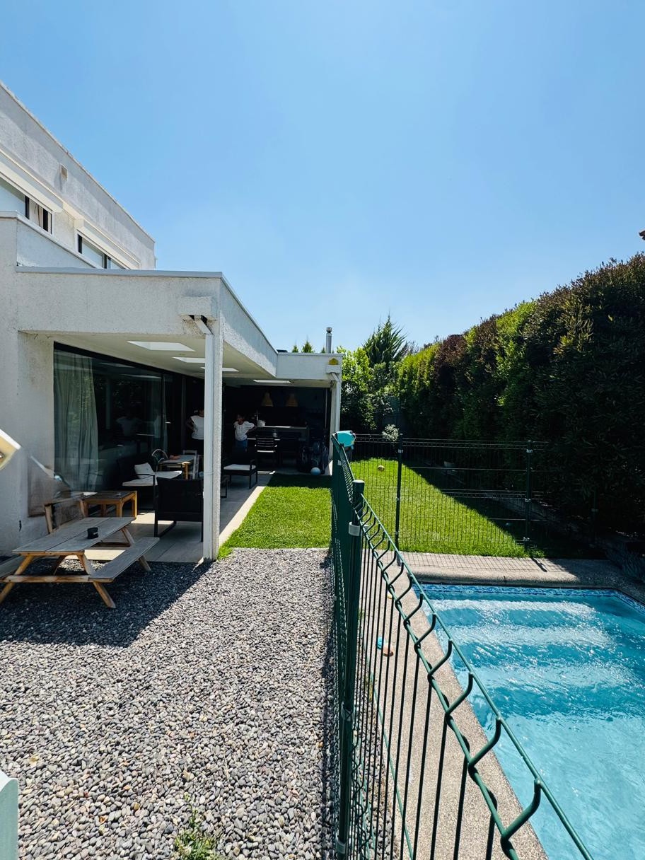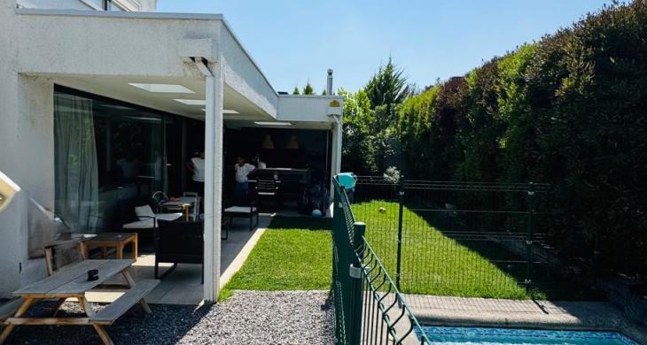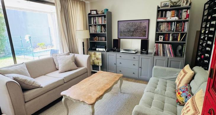 Casa mediterránea en condominio de Chamisero, con acceso controlado y seguridad 24/7, con plaza con juegos infantiles. Ubicado a pasos del Colegio Alianza Francesa y cercano a Colegios Lincoln y Dunalastair, donde disfrutarás de una ubicación privilegiada con fácil acceso a centros comerciales, supermercados y bancos. Con rápido acceso a Vitacura y Santiago por autopista Nor-Oriente y a la Dehesa por Juan Pablo II, lo que te permitirá moverte con facilidad por la ciudad.