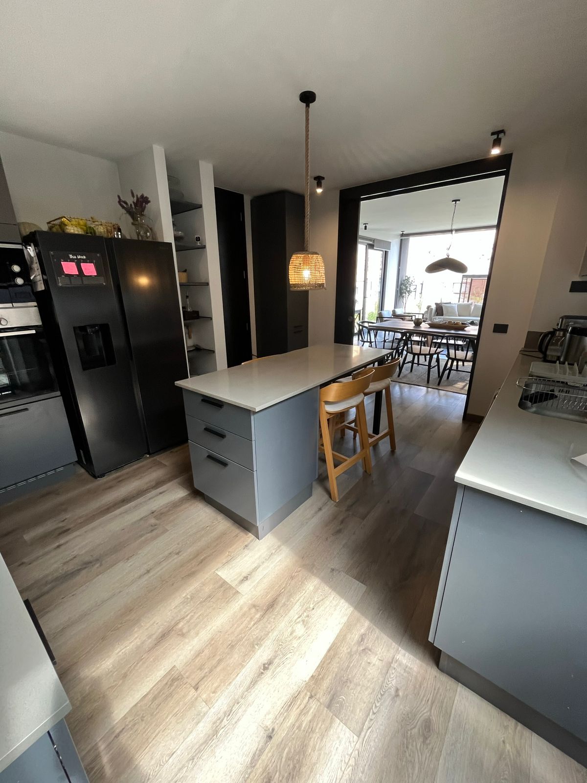 ✅ Cocina Moderna y Equipada con una gran isla, encimera, campana, horno y cubiertas de granito, ideal para las comidas en familia