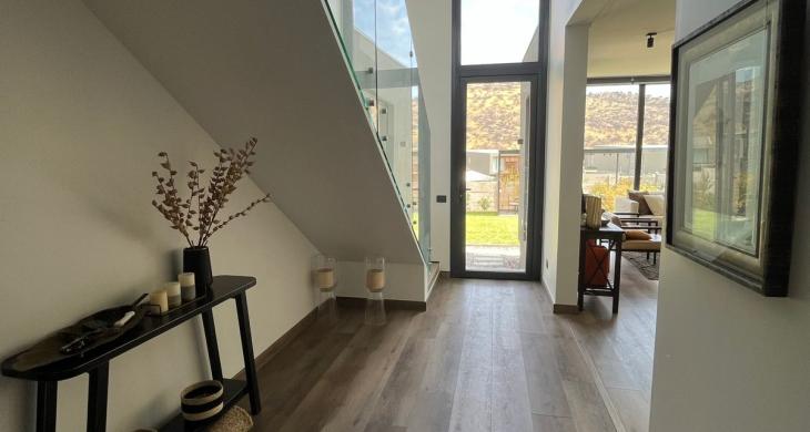 ¡Prepárate para conocer tu nuevo hogar en Chicureo! Esta casa está lista para que la vivas, en un barrio tranquilo y ya consolidado. Su orientación norponiente te asegura una excelente iluminación y calidez. Te va a encantar por sus espacios amplios y llenos de luz, pensados para que tu día a día en familia sea cómodo y placentero. Construida con un sólido sistema de albañilería, esta propiedad asegura durabilidad y confort. Además, si así lo quisieras, cuenta con losa e instalaciones sanitarias para construir un 4to dormitorio y un baño adicional en el 2do. piso.