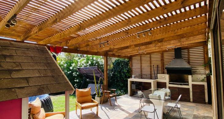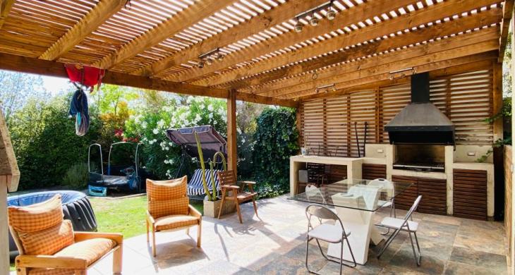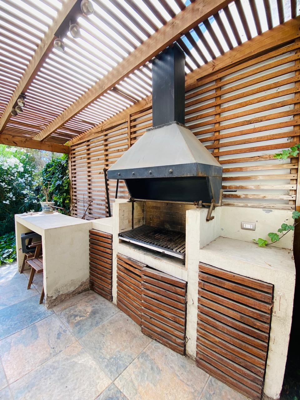 • Quincho en obra con parrilla a carbón, campana y mesón en obra.