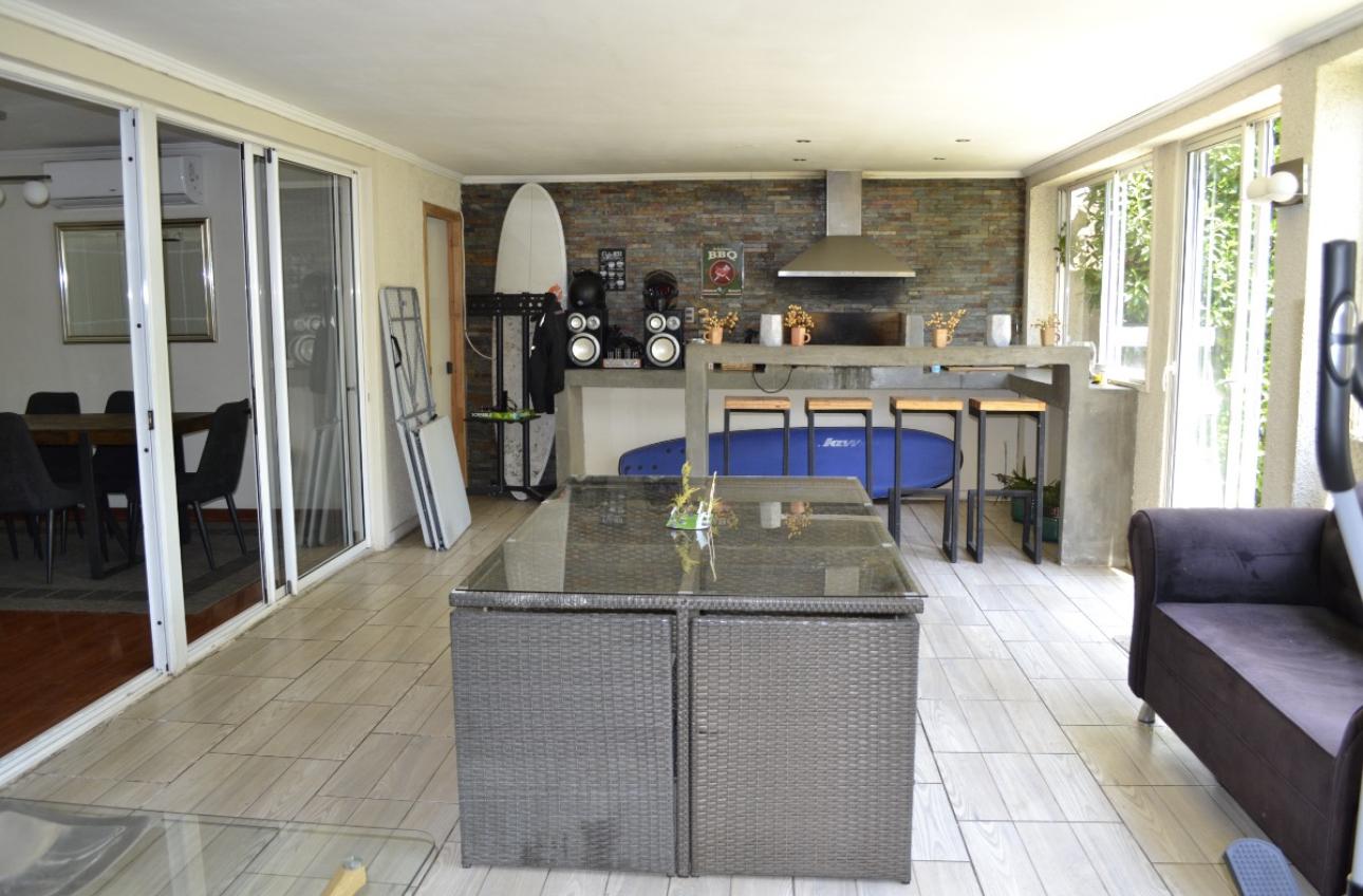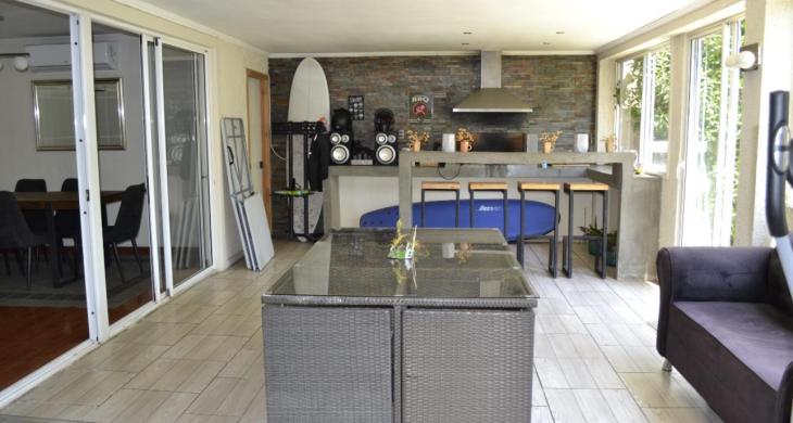 El área social sorprende con un quincho interior y una terraza cerrada, que se complementan con un moderno deck de hormigón y terraza abierta, perfectos para celebraciones y encuentros al aire libre.