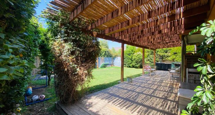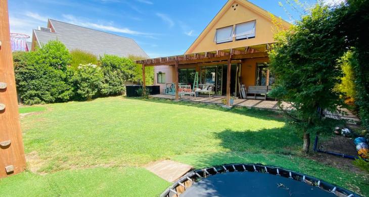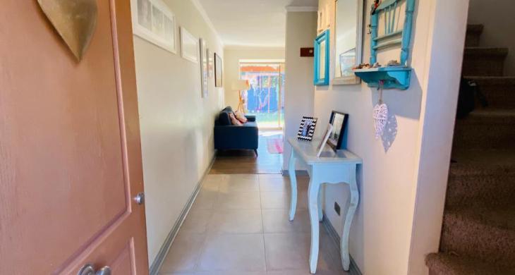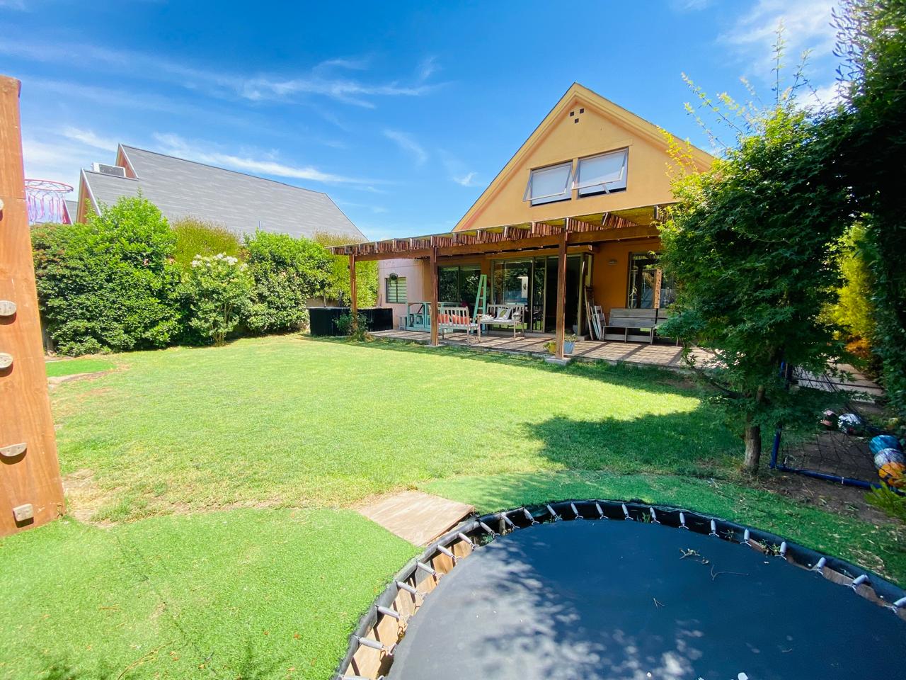Descubre el equilibrio perfecto entre comodidad, estilo, naturaleza y cuidado del medio ambiente, en esta encantadora casa de 2 pisos en un amplio terreno, ubicada en un barrio organizado con portón eléctrico y televigilancia, con plaza con juegos de niños y áreas verdes. Ideal para familias que buscan tranquilidad y un entorno natural, sin alejarse de la ciudad, rodeada de colegios de prestigio como Colegio Highlands y Cabo de Hornos, entre otros, y con todo lo que necesitas a solo minutos: Strip Center, supermercados, servicios, comisaría y conectividad directa a Santiago.