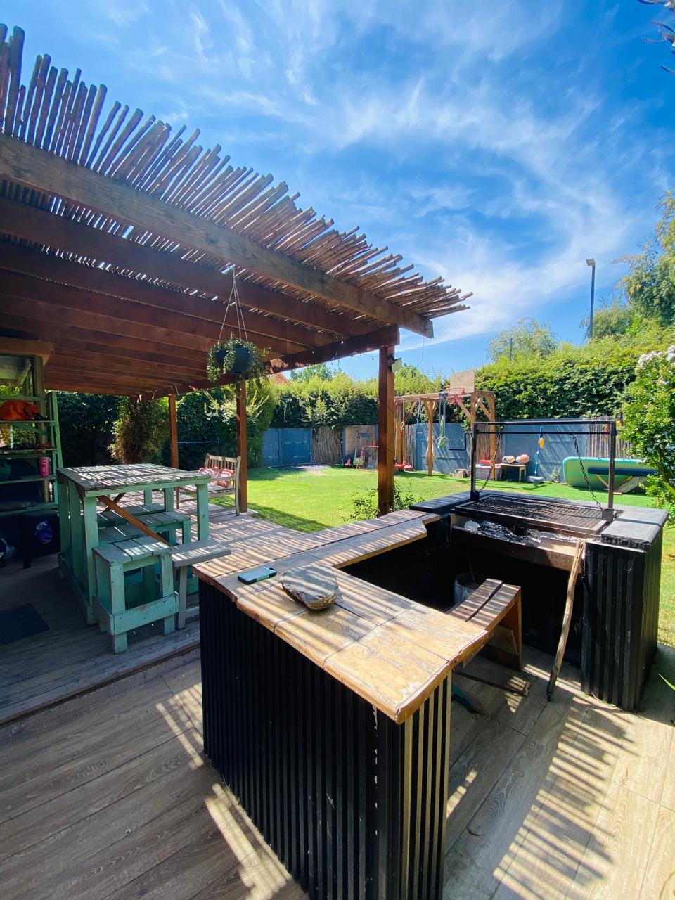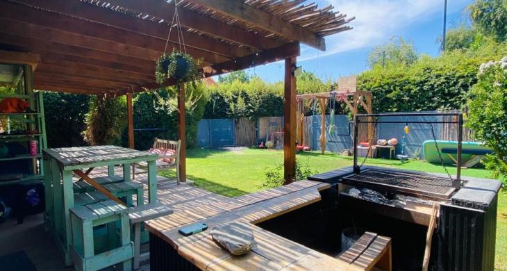 Terraza Techada de gran tamaño con Quincho incorporado (sin techar).