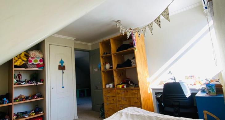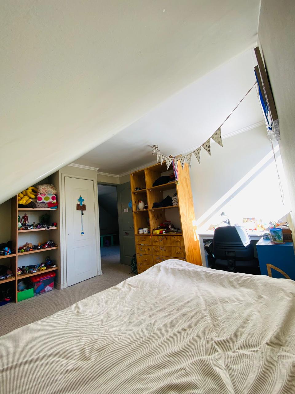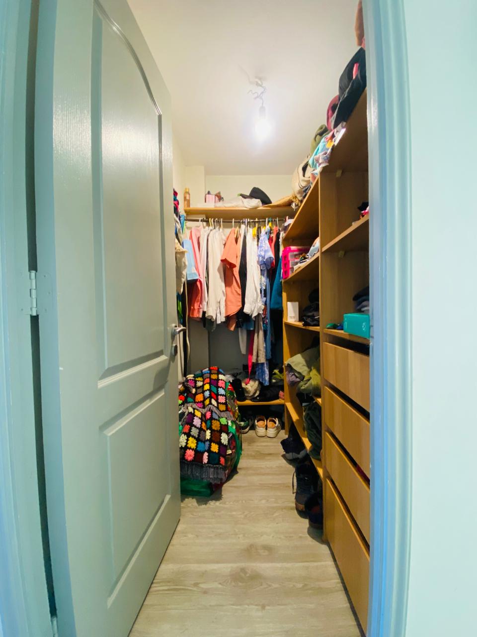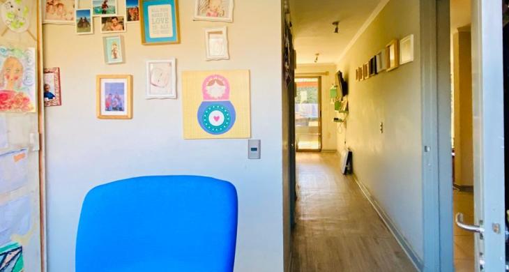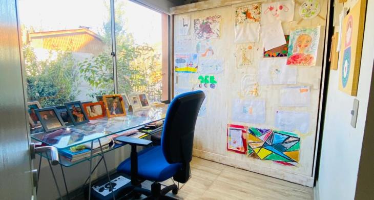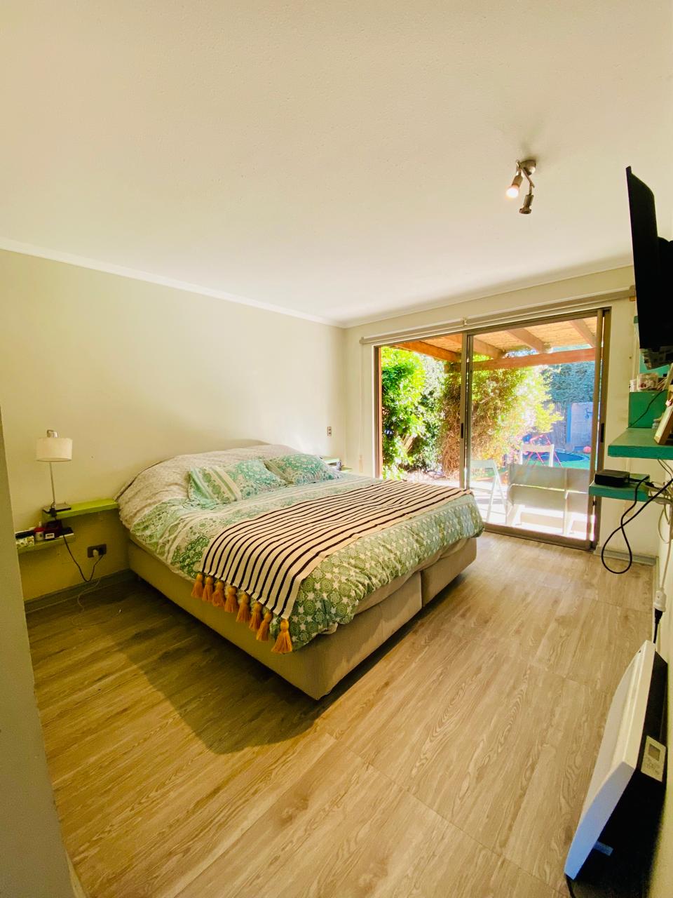 1 dormitorio en suite con Walk in closet, con salida directa al jardín. Con un espacio versátil y acogedor para usar como Escritorio o pieza de bebé.