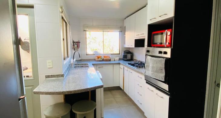 Cocina equipada con horno empotrado, comedor de diario, amoblada, y con cubierta de granito.