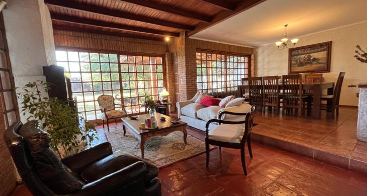 Esta imponente casa de un piso, construida en 1994, se emplaza en un extenso terreno de 1443 m² con 139 m² construidos. Cuenta con 5 dormitorios, incluyendo 2 suites, y 4 baños, proporcionando comodidad y privacidad para todos los miembros de la familia. Disfrute de la conveniencia de 4 estacionamientos y una distribución inteligente que maximiza el espacio y la luminosidad.