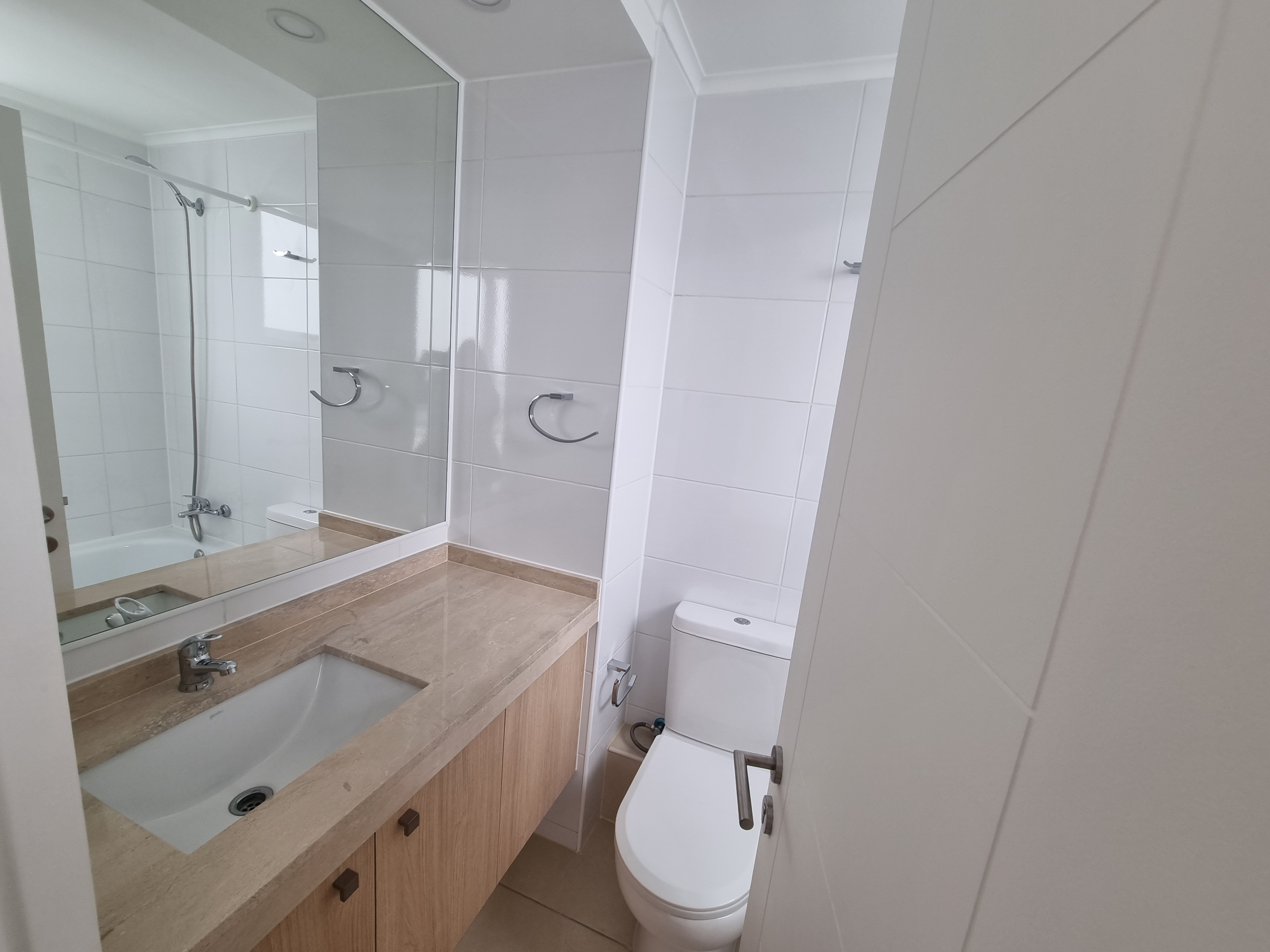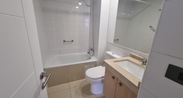 Se encuentra este amplio departamento de 2 domitorios 2 baños, incluye 1 bodega y 1 estacionamiento, mararavilloso condominio construido por inmobiliaria Delabase, ubicado estratégicamente en San Miguel, cuenta con quinchos, parque infantil, caminerias y dos piscinas, goza de excelente conectividad con el resto de la ciudad. A pocos minutos encontrarás estacion de metro san miguel, paraderos, y acceso a importantes vías. La cercanía a centros comerciales, supermercados, colegios y servicios básicos facilita el día a día. Además, el barrio ofrece una amplia variedad de restaurantes, parques y espacios recreativos para disfrutar del tiempo libre.