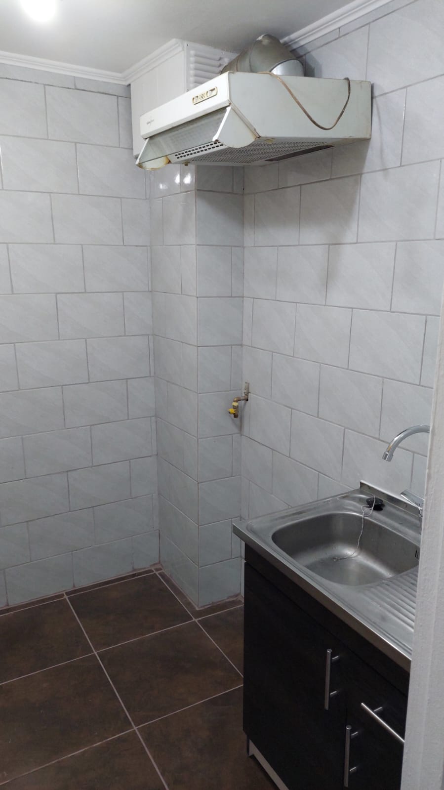 Cocina tradicional, con mueble lavaplatos nuevo, más otro mueble de cocina en buen estado, campana nueva instalada.