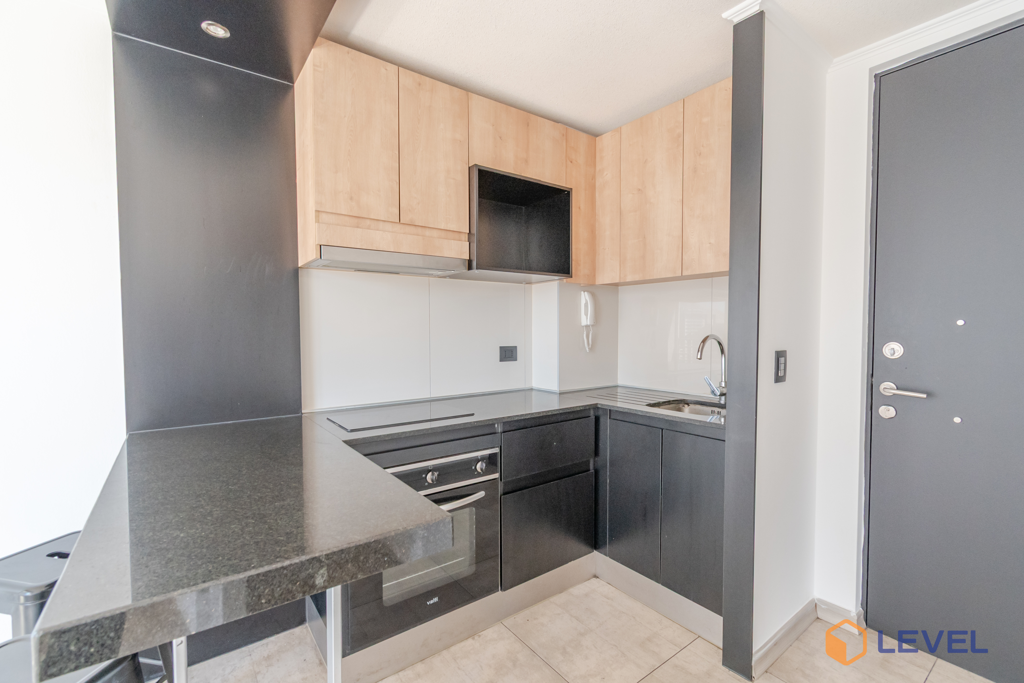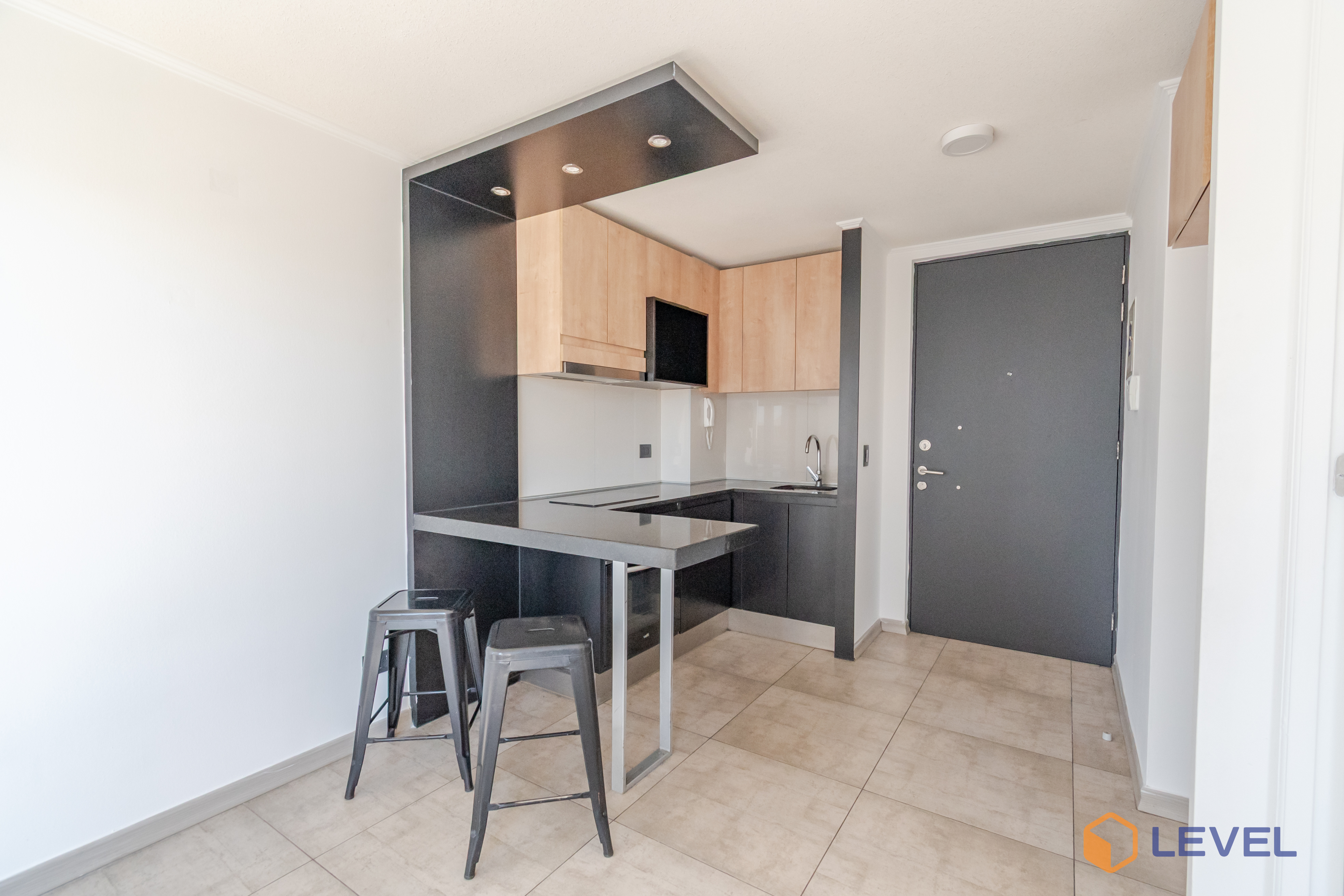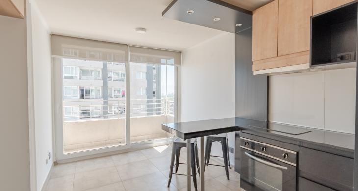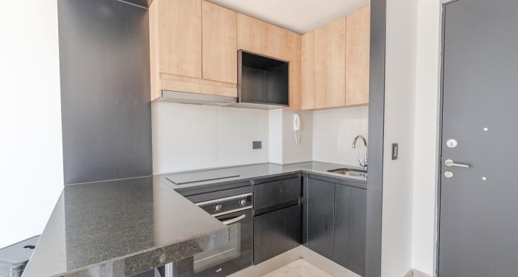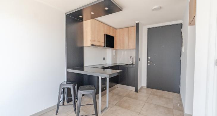 En cuanto a sus especificaciones técnicas, el departamento cuenta con una configuración de un dormitorio independiente, lo que garantiza el descanso y la privacidad necesaria en el día a día. Dispone de un baño completo con terminaciones de primer nivel, diseñadas para resistir el uso cotidiano manteniendo un aspecto elegante. El área social integra una cocina funcional equipada con muebles de excelente factura y encimeras resistentes, creando un ambiente fluido ideal para la vida moderna. La habitabilidad se ve potenciada por una ventilación adecuada y una disposición que permite una excelente entrada de luz natural durante gran parte del día.