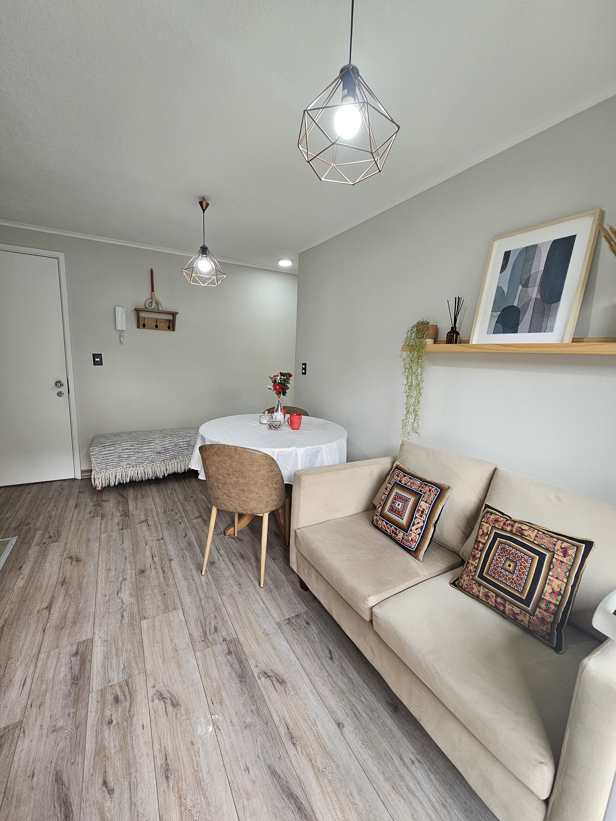 • Piso fotolaminado en living, comedor y dormitorio