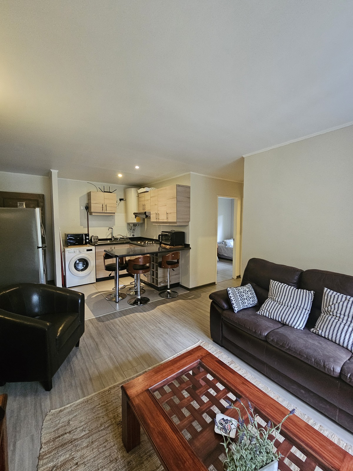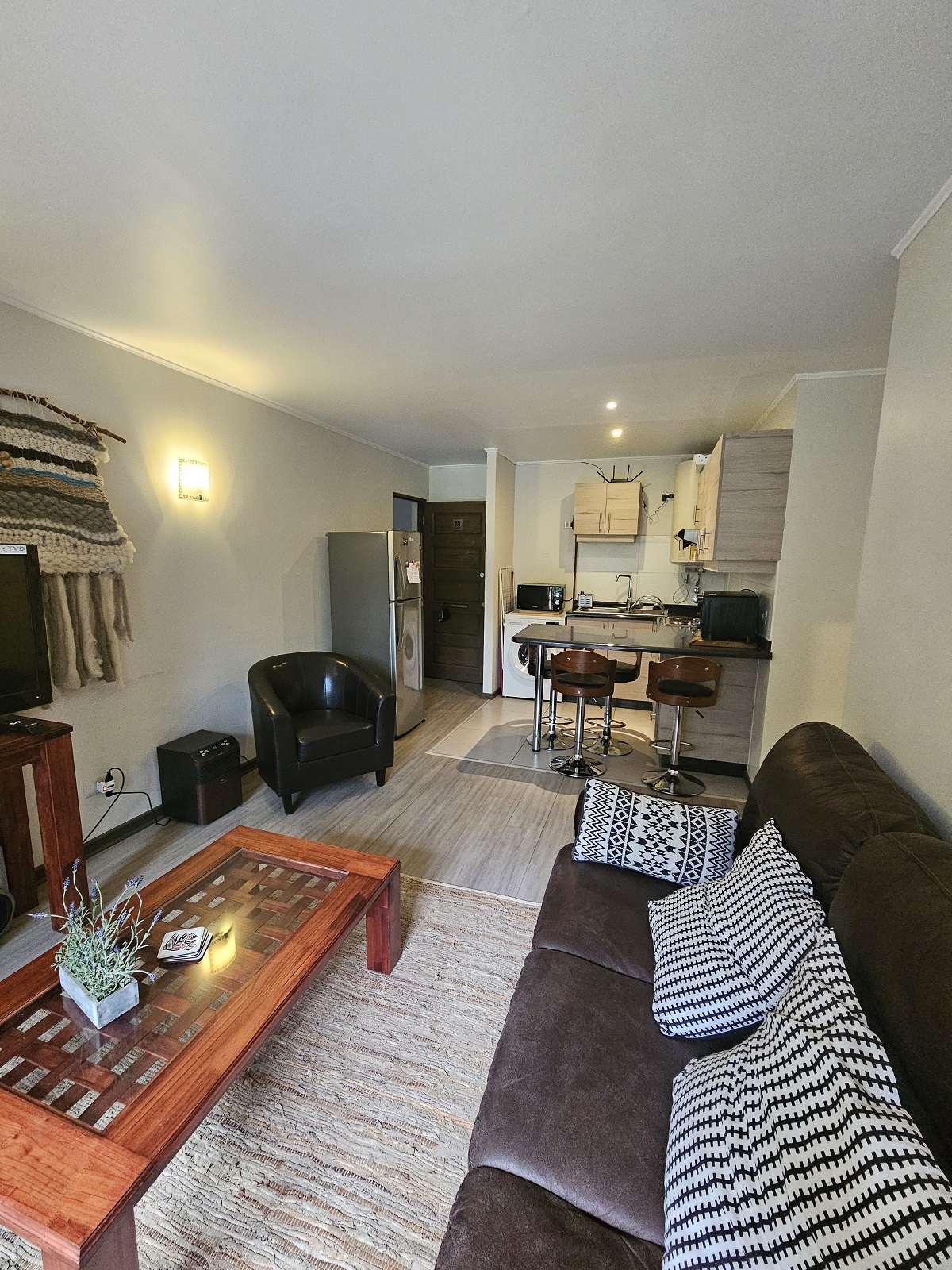Construida en el año 2019, la unidad se encuentra en el segundo piso de una torre de solo cuatro niveles, lo que garantiza una atmósfera de privacidad y baja densidad habitacional. La zona social se integra armoniosamente con una terraza privada de 3 metros cuadrados, el lugar ideal para disfrutar del aire puro y la tranquilidad que solo Pucón puede ofrecer. Además, la propiedad incluye un estacionamiento privado, un elemento esencial para garantizar la comodidad y seguridad de su vehículo en una de las zonas con mayor demanda de la comuna.
