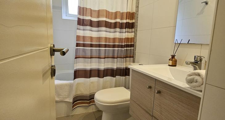 Este exclusivo departamento, situado en el reconocido Condominio Pucón Andino, destaca por su diseño funcional y su excelente estado de conservación. Con una superficie total de 57 metros cuadrados construidos, la propiedad ha sido optimizada para ofrecer el máximo confort en cada uno de sus rincones. La distribución interior contempla dos amplios dormitorios, destacando la habitación principal configurada en suite, proporcionando un espacio íntimo y refinado. El inmueble dispone de dos baños completos con terminaciones modernas, diseñados para satisfacer las necesidades de una familia o un grupo de hasta cuatro personas.