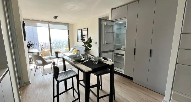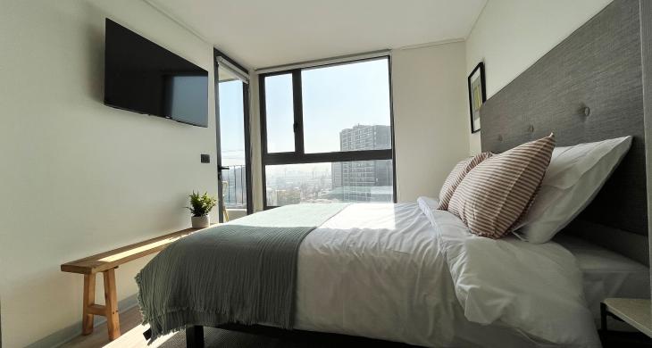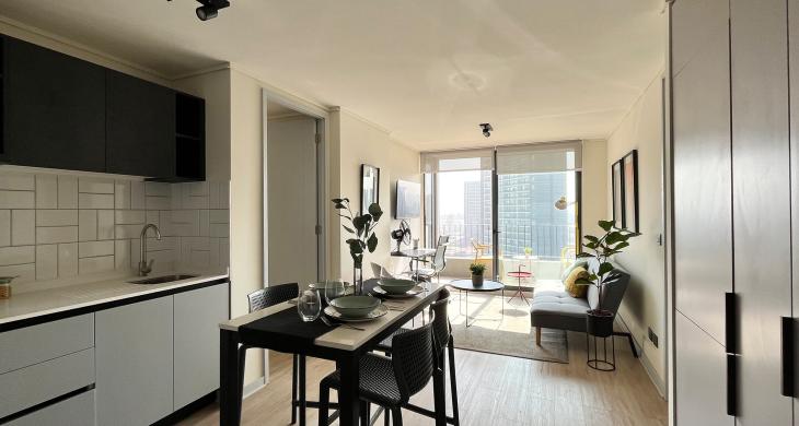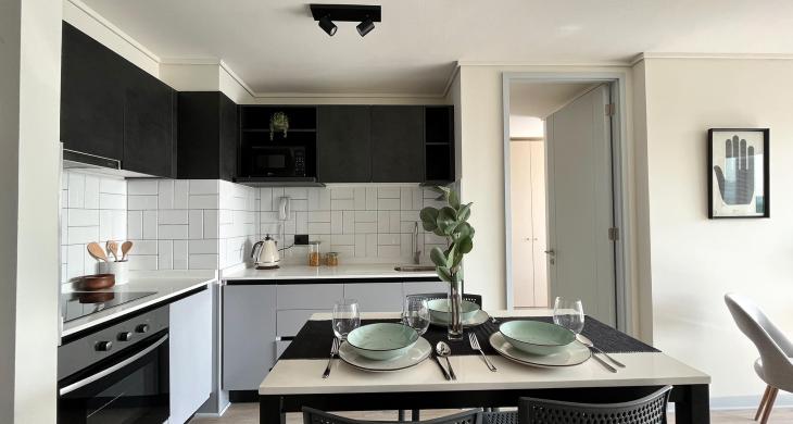 La zona social del inmueble se integra armoniosamente con una cocina equipada y funcional, diseñada para quienes disfrutan de la practicidad sin perder la conexión con el living-comedor. La ubicación en el piso 10 garantiza una luminosidad natural envidiable durante gran parte del día, además de proporcionar una vista despejada que permite apreciar la dinámica de la comuna desde un refugio de paz y silencio. Un valor agregado fundamental es la inclusión de un estacionamiento privado en el mismo edificio, brindando la seguridad y comodidad necesaria para quienes poseen vehículo en un sector de alta demanda.