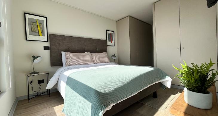 Este departamento de tipología tradicional ofrece una experiencia habitacional superior, situándose en el décimo piso de un edificio de categoría. Su diseño interior se compone de dos amplios dormitorios, donde la habitación principal ha sido concebida para brindar privacidad y descanso, complementada con un baño en suite de finas terminaciones. El segundo dormitorio posee dimensiones generosas, ideal para ser utilizado como habitación de invitados, cuarto de niños o una oficina privada para el teletrabajo. En total, la propiedad cuenta con dos baños completos, lo que asegura funcionalidad y fluidez tanto para sus habitantes como para sus visitas.