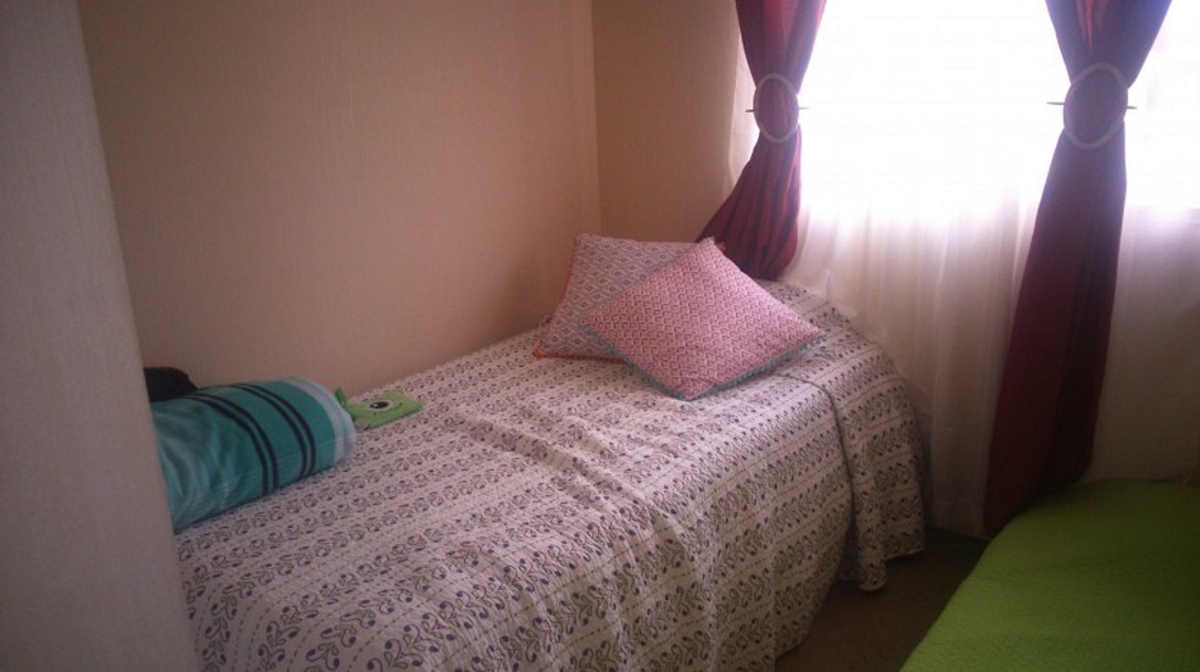 Cama matrimonial y cama de plaza y media, refrigerador, cocina, etc.