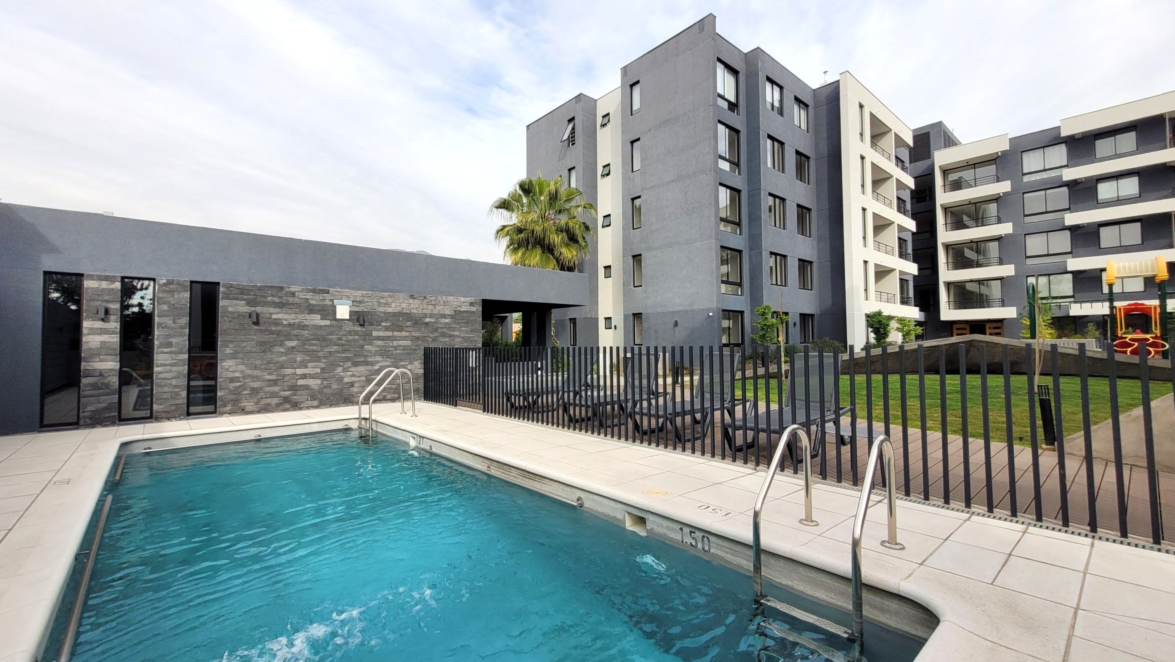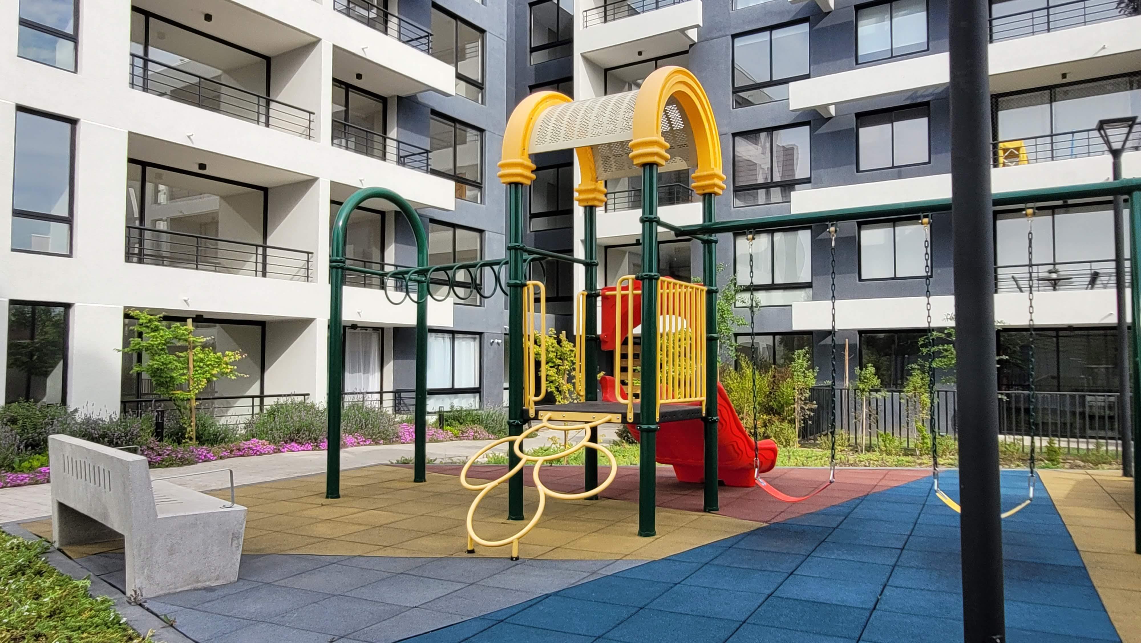 Edificio con acceso controlado las 24 hrs. Equipado con Piscina, Quinchos, Sala de eventos, Gimnasio, Lavandería, Juegos infantiles y Estacionamientos de visitas.