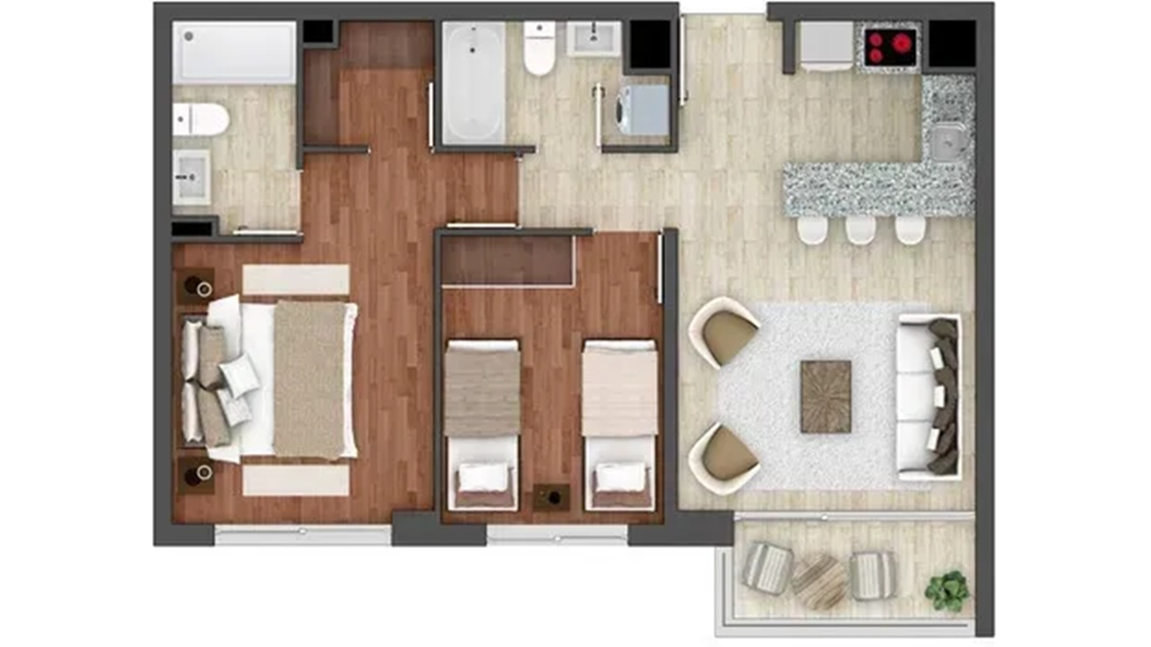 - 2 dormitorios (principal en suite con walk-in closet).