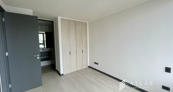 Ubicado en un sector privilegiado por su acceso a servicios de alto estándar, este departamento a estrenar destaca por su arquitectura funcional de concepto mariposa, donde ambos dormitorios se encuentran distribuidos en suite y separados por el área de estar, garantizando máxima independencia y comodidad para sus residentes. Con una superficie total de 56 metros cuadrados, la unidad se sitúa en el séptimo piso de un edificio de construcción contemporánea (año 2023) de solo ocho niveles, lo que asegura una convivencia tranquila y un entorno residencial exclusivo y seguro.