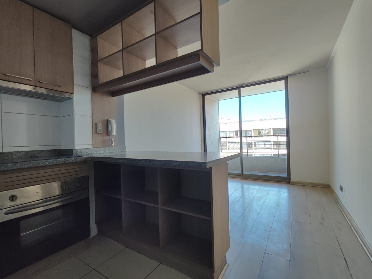 Depto. cuenta con cocina encimera, horno y campana, balcón con vista despejada y conexión a lavadora.
