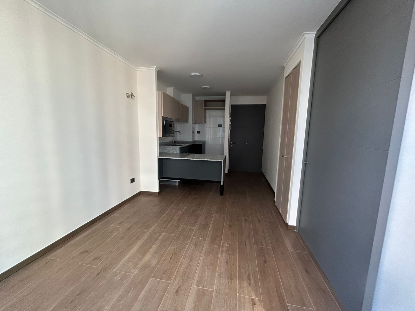 Departamento cuenta con cortinas, focos, soporte para Tv, balcón amplio, microondas y conexión a lavadora.