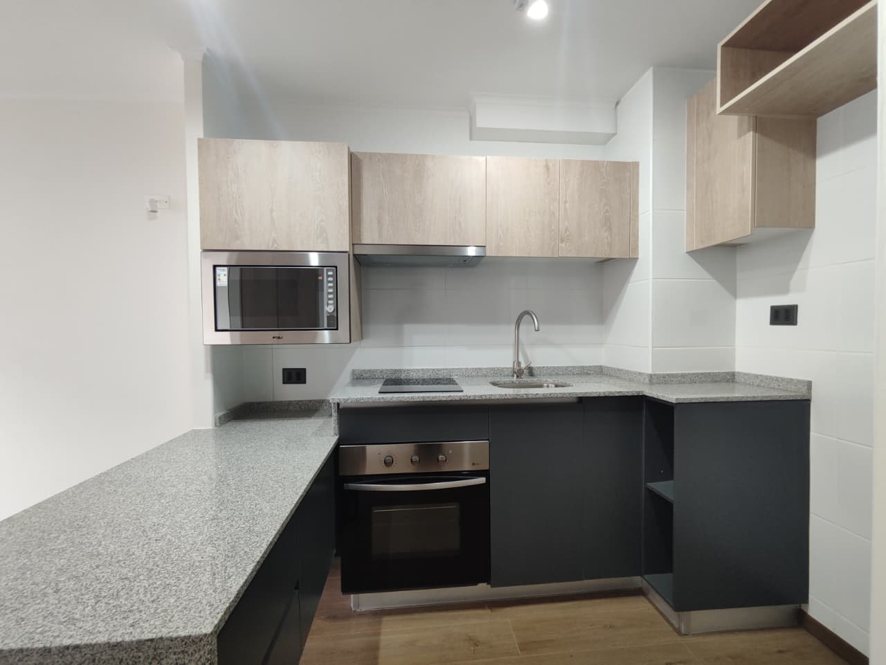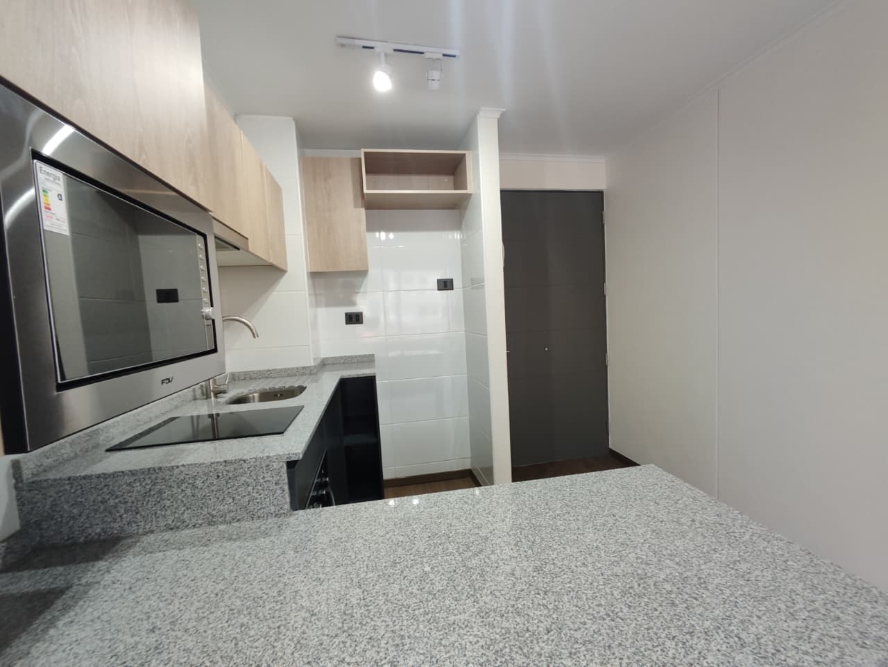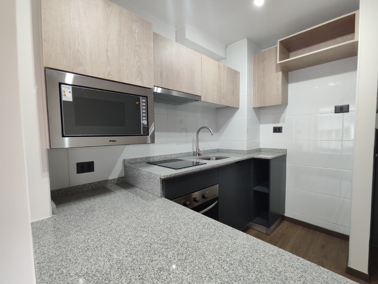 Departamento cuenta con cortinas, focos, soporte para Tv, balcón amplio, microondas y conexión a lavadora.