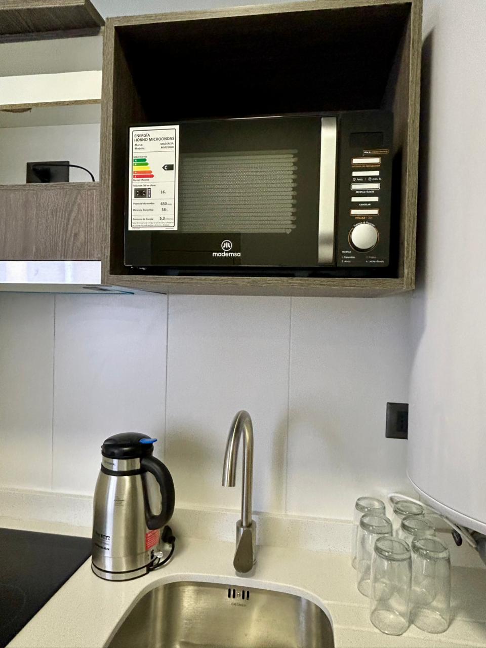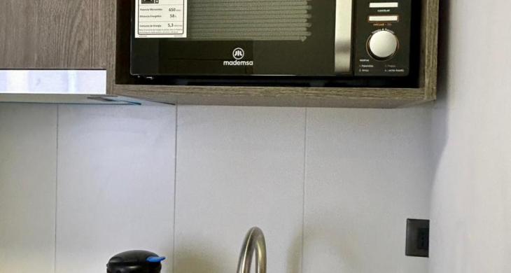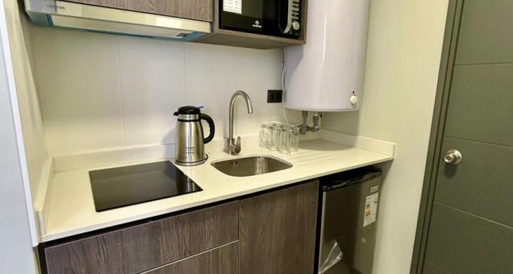 Oficina cuenta con cocina encimera, horno y campana, refrigerador, microondas, hervidor, entre otro equipamiento.
