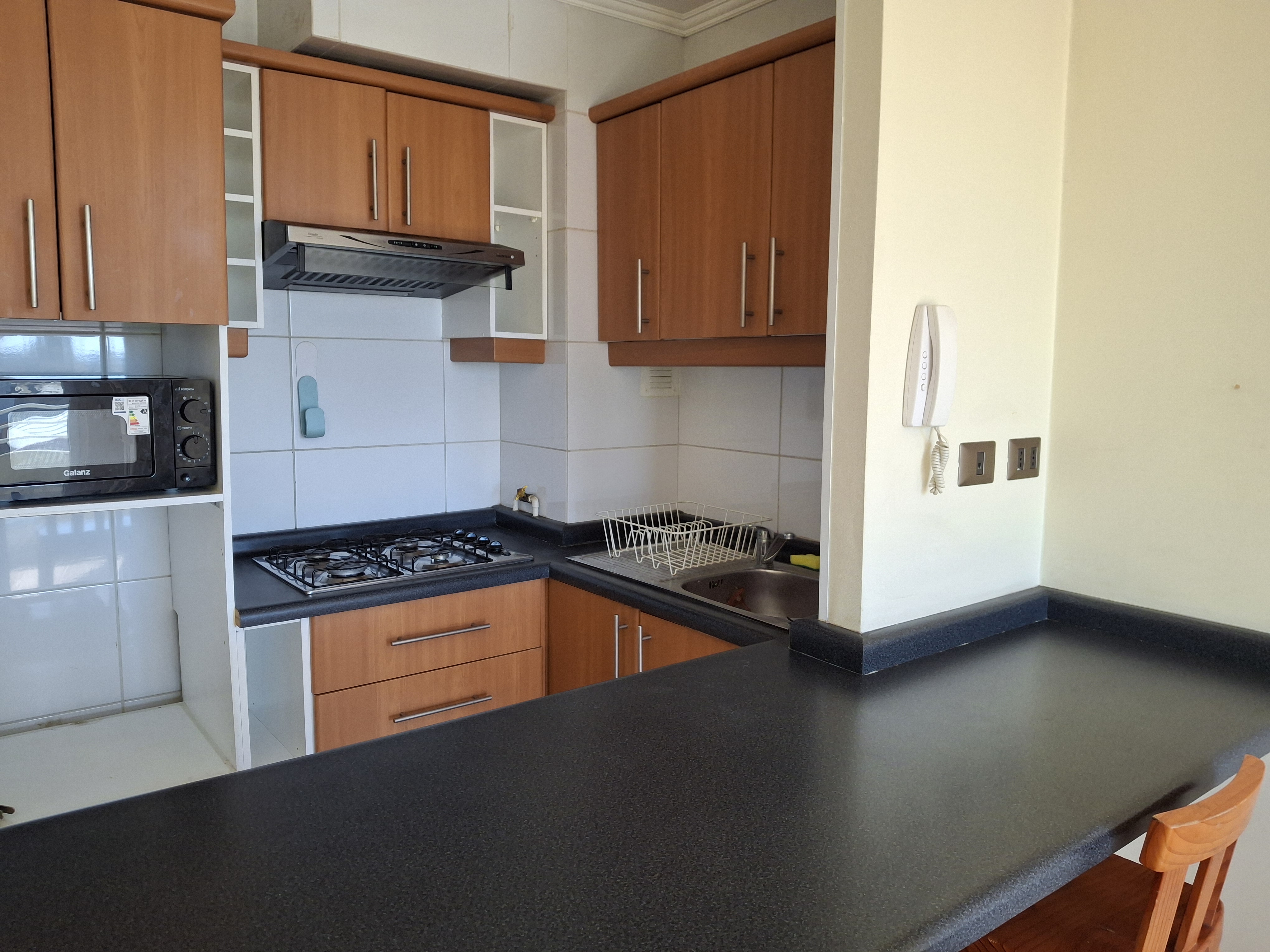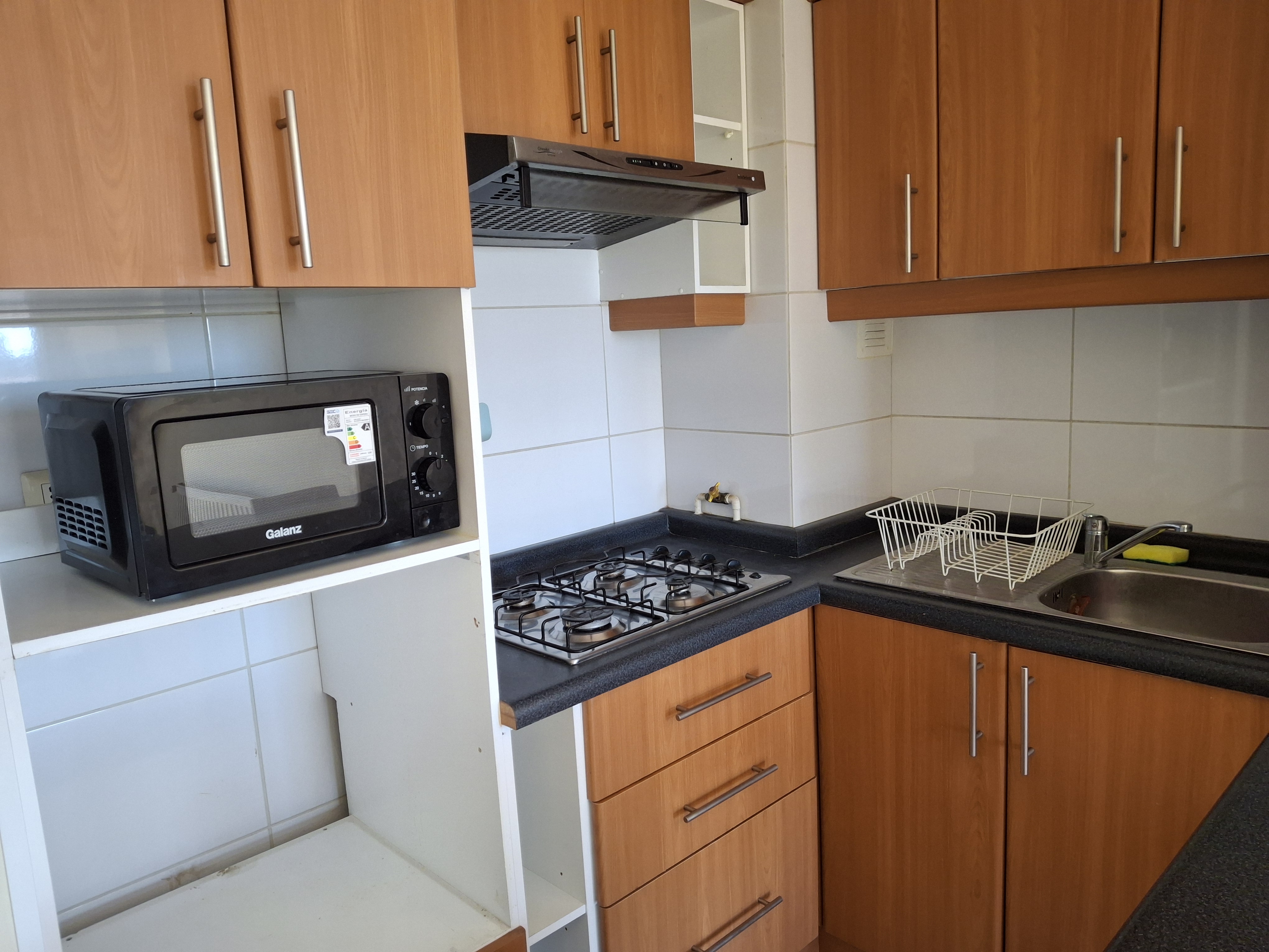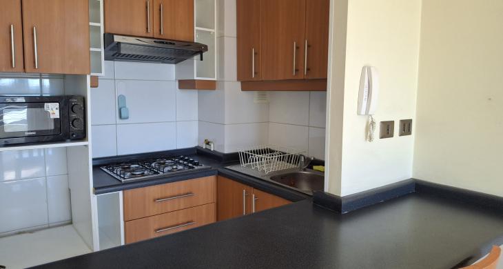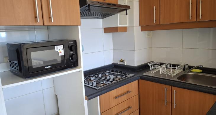 Departamento cuenta con cocina y horno empotrado.